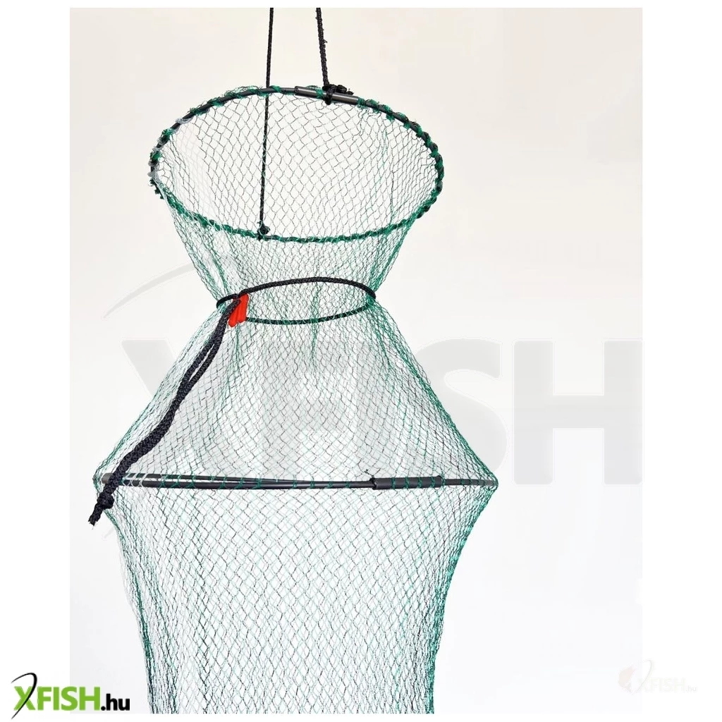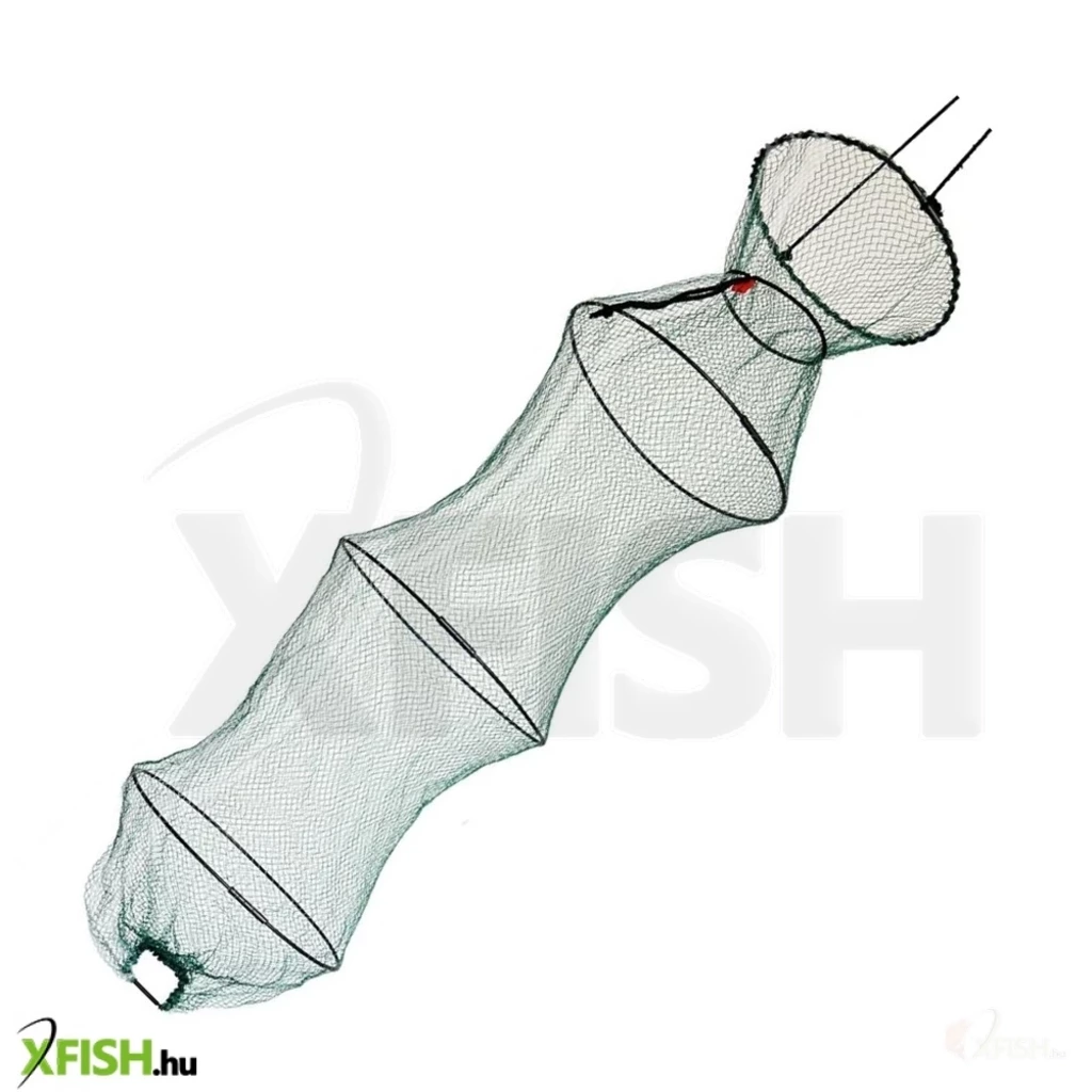 KOLPO 4 karikás haltartó háló. A halak tárolására szükségünk van egy megfelelő minőségű és méretű haltartóra. Az erősített szövésű klasszikus hálóanyag mely természetes szálból készül, szinte elszakíthatatlan, míg természetes anyagának köszönhetően halbarát, tehát nem dörzsöli ki a halak bőrét. Hossza 100 centiméter melyben kényelmesen eltárolhatunk 3-4 kiló apróhalat, vagy a megengedett pár darab nemes halat. A 3 db karika megkönnyíti a halak mozgását a haltartón belül ezért tovább életben maradnak.