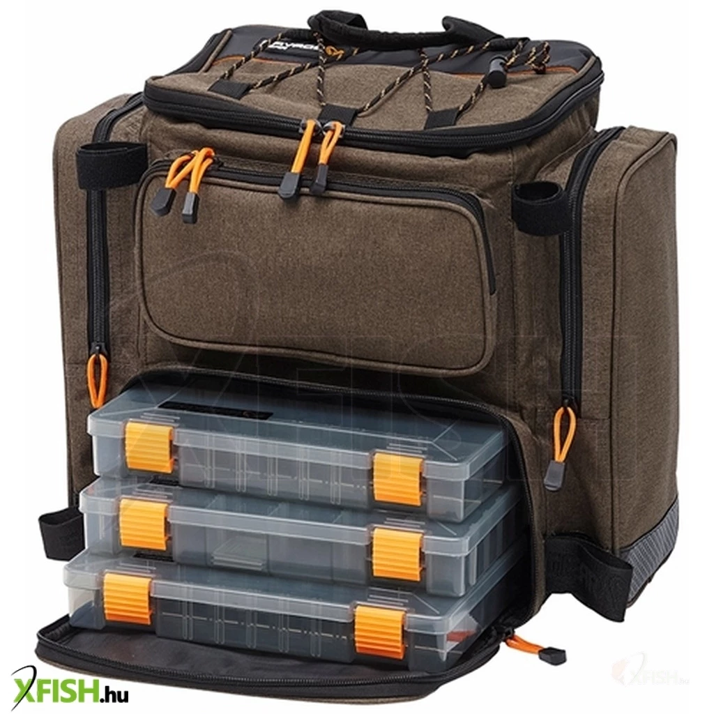 Tartsa kéznél az összes szükséges horgászfelszerelést ezzel a praktikus és sokoldalú hátizsákkal. A könnyen hozzáférhető elülső rekeszen belül három csalitartó doboz található, míg a felső fő rekeszben egy lehajtható elválasztófal található, így a táska könnyen átalakítható egyetlen nagy rekesszé. Ez az optimális hátizsák a mobil cserkelő pergető horgászok számára épült, amellyel nagyobb távolságokat tehet meg.