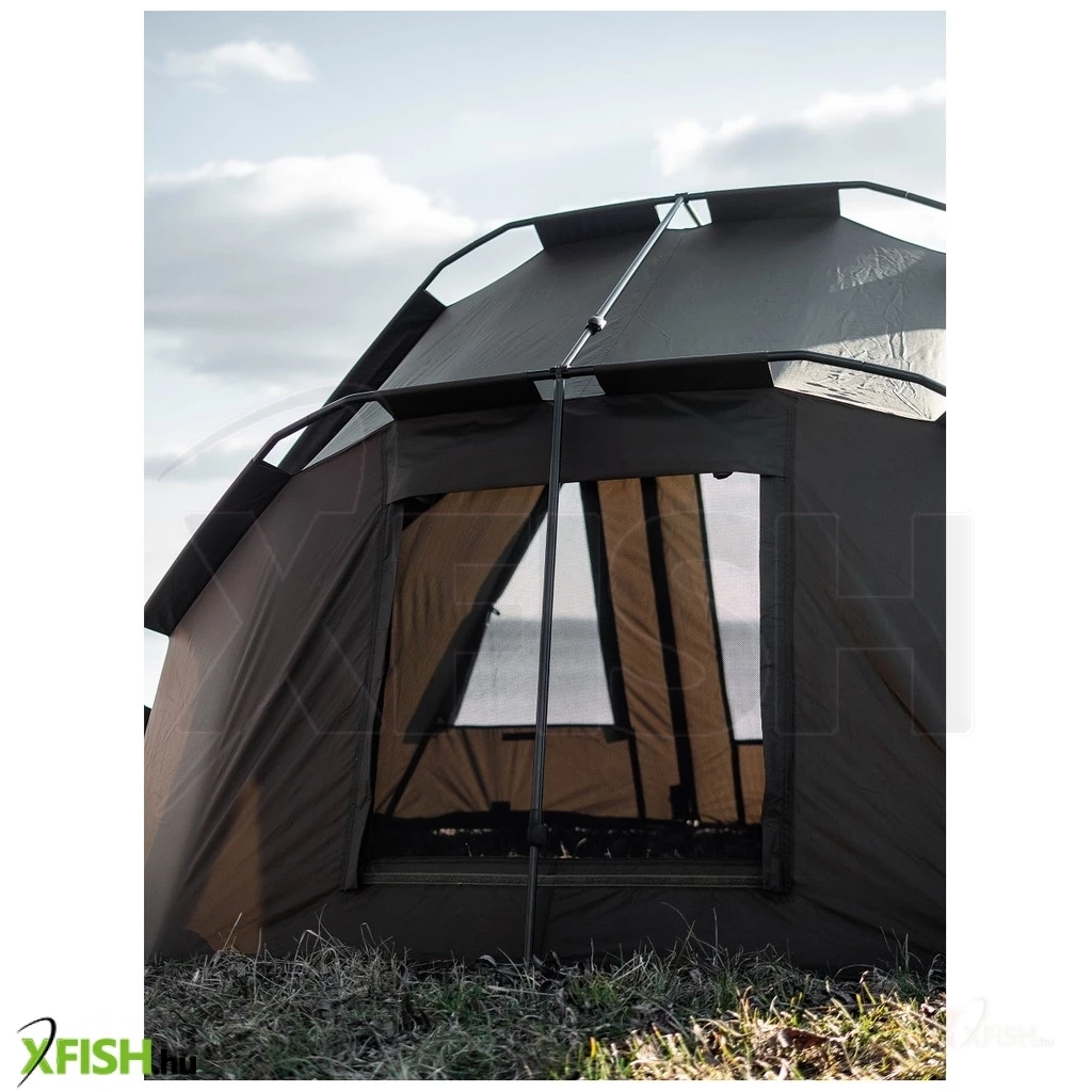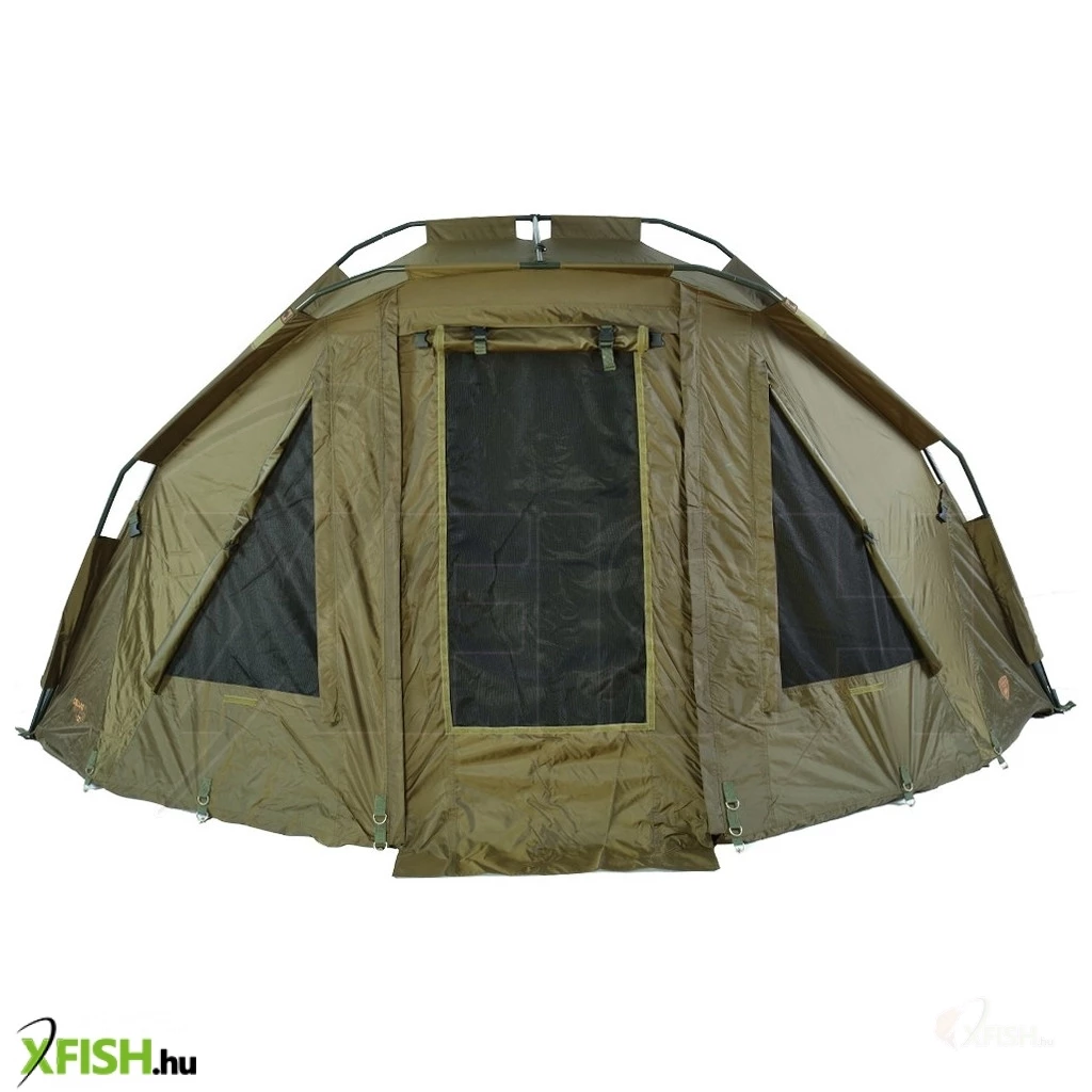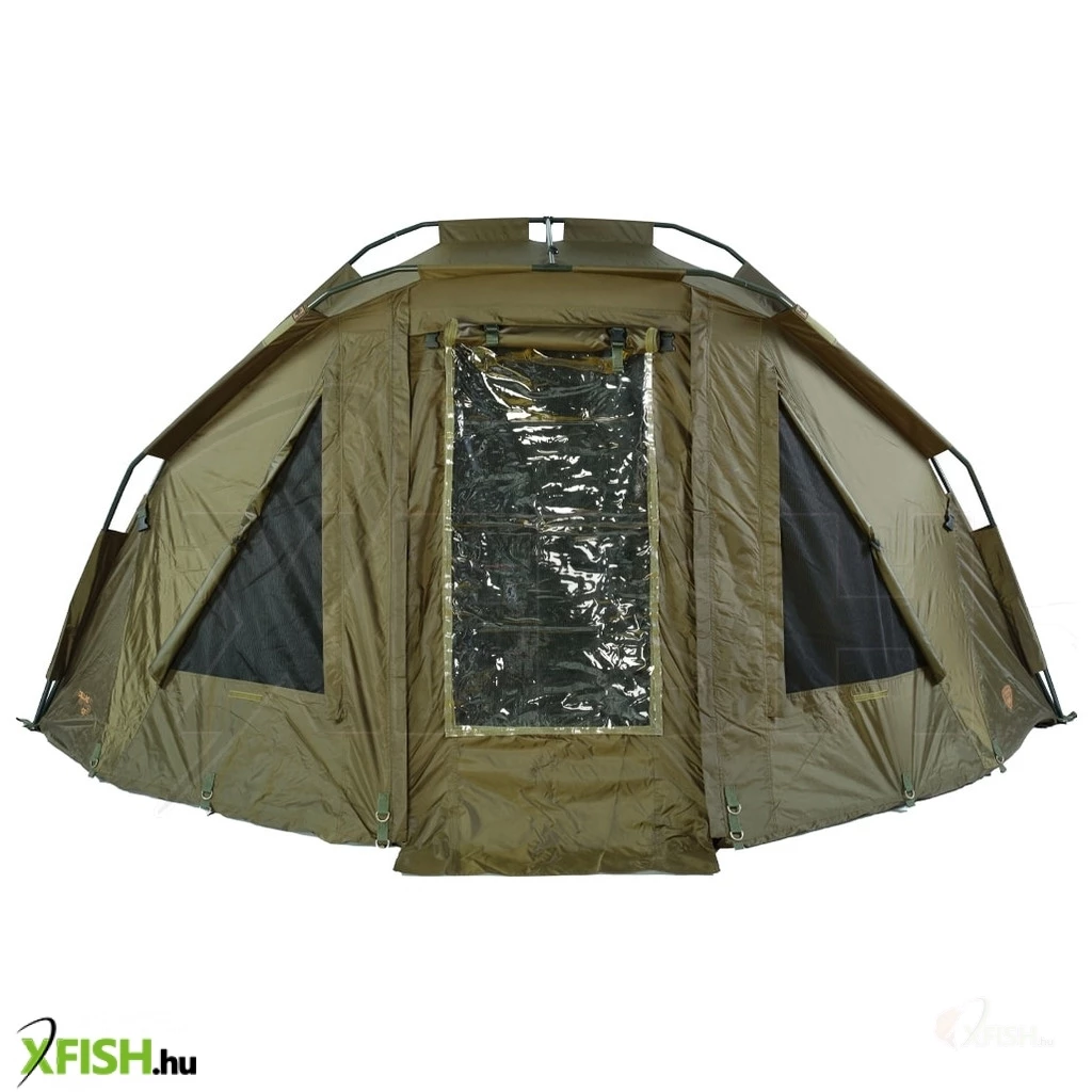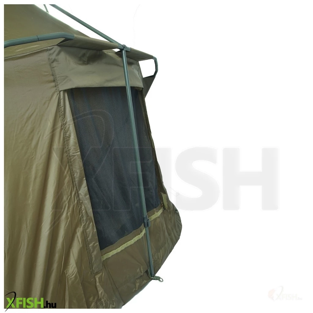 Csőszerkezetű horgász sátor, mely három bordából áll, a megerősítést pedig terelő teleszkópos rudak adják. Ehhez a sátorhoz 5000 mm HH vízálló anyagot használtak, a legjobb minőségű, amely 100%-ban vízálló, és számos sikeres modellünkön teszteltük. Ragasztott varratok és rögzítés a fúrócsapokhoz, melyeket a menedék ára tartalmaz. A sátor szellőzőrendszerrel van felszerelve mind az elülső, mind a hátsó részen két óriási szellőzőablak található, amelyek maximális szellőzést biztosítanak. A bejárat feletti nagy elülső napellenző két praktikus rúdtartóval is fel van szerelve. Az elülső bejárati rész három cserélhető tépőzáras panellel rendelkezik, teljesen fedett, csillámos vagy szúnyoghálós. A sátor másik jellemzője, hogy rossz időben a dupla cipzáros csúszkák használatának köszönhetően ablakot lehet kialakítani a bejárati részben.