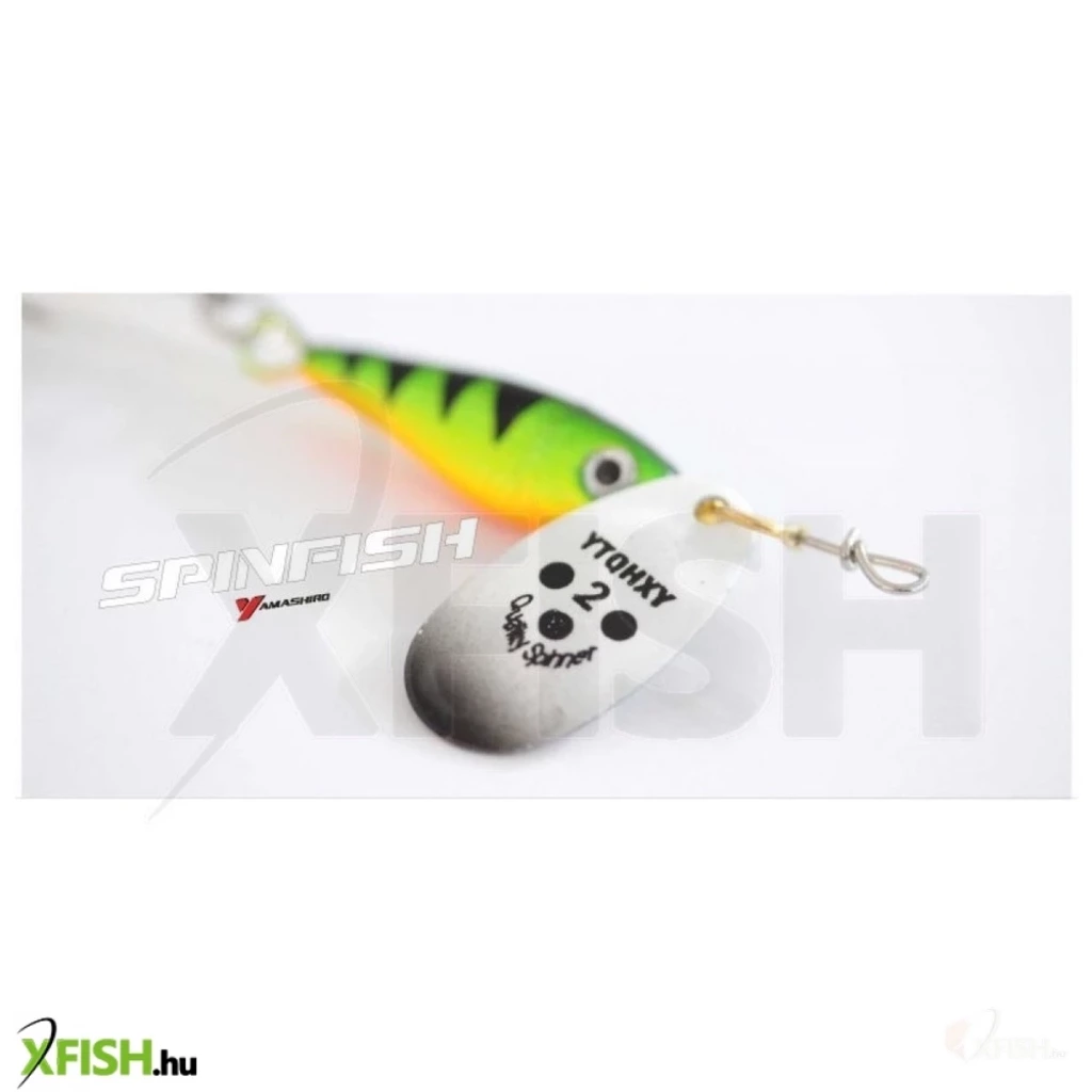Yamashiro Spinfish műcsali, amely ötvözi a fém testet és a körforgó villantót. Jól dobható, gyorsan süllyedő csali. Bármely hazai tavi vagy folyami pergető módszerhez választható. Egy nagyon sikeres műcsali, remek színekben elérhető