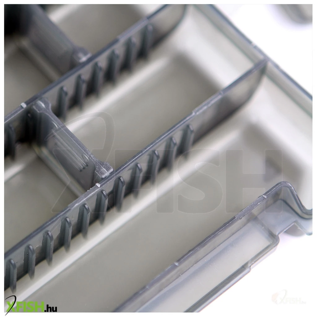 A szokásos szerelékes dobozokhoz képest vastagabb és erősebb anyagú, meglehetősen masszív tároló. Az osztások tetszés szerint variálhatóak. Akasztófüllel, erősített zárócsattal. Füstszínű, magas UV állósága miatt nagyon kedvelt pergető kiegészítő.