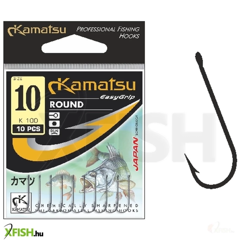 A Kamatsu Round népszerű kerek horog meghosszabbított szárral. Ideális kukacokkal és földigilisztákkal való halászathoz. Az oldalsó hevederes módszerben a csali beállítására szolgálnak. A hosszú szár használata miatt nagyon könnyen eltávolítható a hal szájából.
