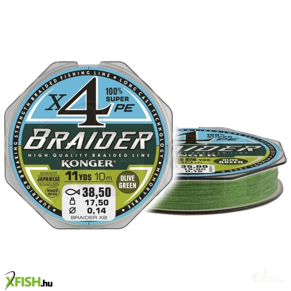 Konger Braider X4 Olive Green Fonott Előkezsinór 10m 0,14mm 14,5Kg