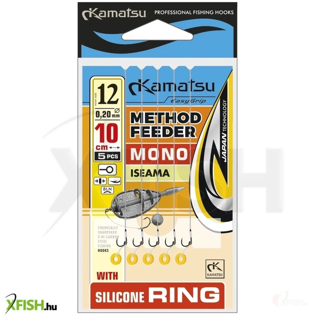 Egy nagyon jó minőségű előkötött horog a nagy Kamatsu márka kínálatában. A terméket kimondottan method és feeder horgászok számára gyártotta le a márka. Prémium minőségű alkotóelemek és minőségi kötések jellemzik a terméket. Az etetőkosár nem tartozéka a szettnek, az ajánlat kizárólag az előkötött horgokat tartalmazza.