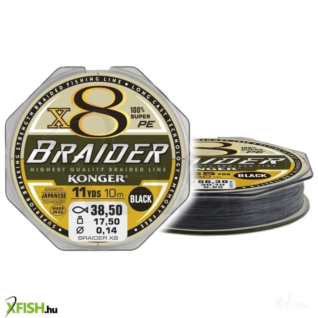 Konger Braider X8 Black Fonott Előkezsinór 10m 0,12mm 11,8Kg