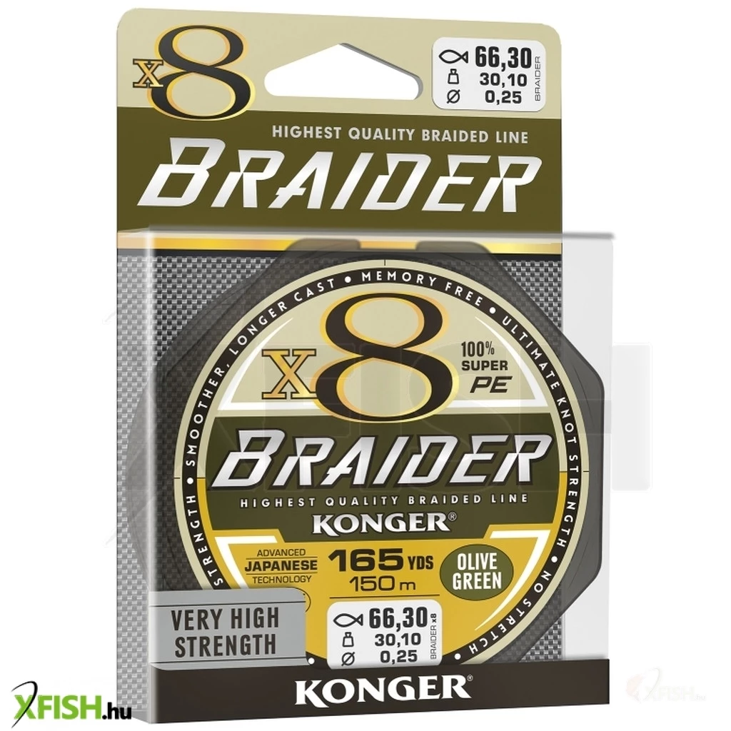 ![]() | Konger Braider X8 Olive Green Fonott Előkezsinór 10m 0,25mm 30,1Kg Hosszúság: 10 m | Átmérő: 0.25 mm | Szakítószilárdság: 30 kg