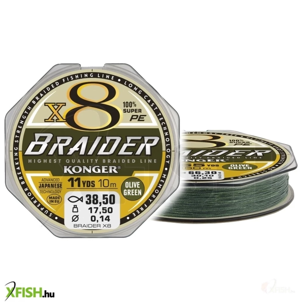 Konger Braider X8 Olive Green Fonott Előkezsinór 10m 0,10mm 10,7Kg
