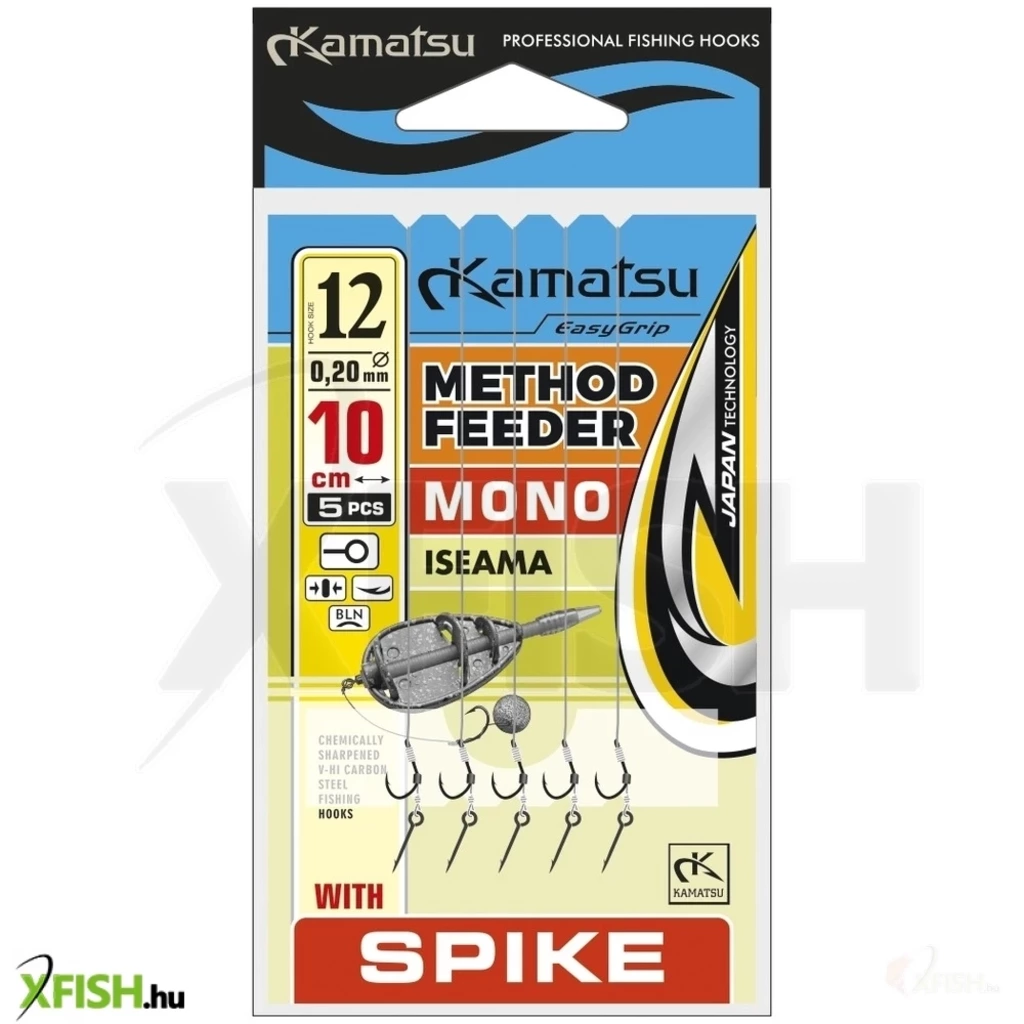 Egy nagyon jó minőségű előkötött horog a nagy Kamatsu márka kínálatában. A terméket kimondottan method és feeder horgászok számára gyártotta le a márka. Prémium minőségű alkotóelemek és minőségi kötések jellemzik a terméket. Az etetőkosár nem tartozéka a szettnek, az ajánlat kizárólag az előkötött horgokat tartalmazza.