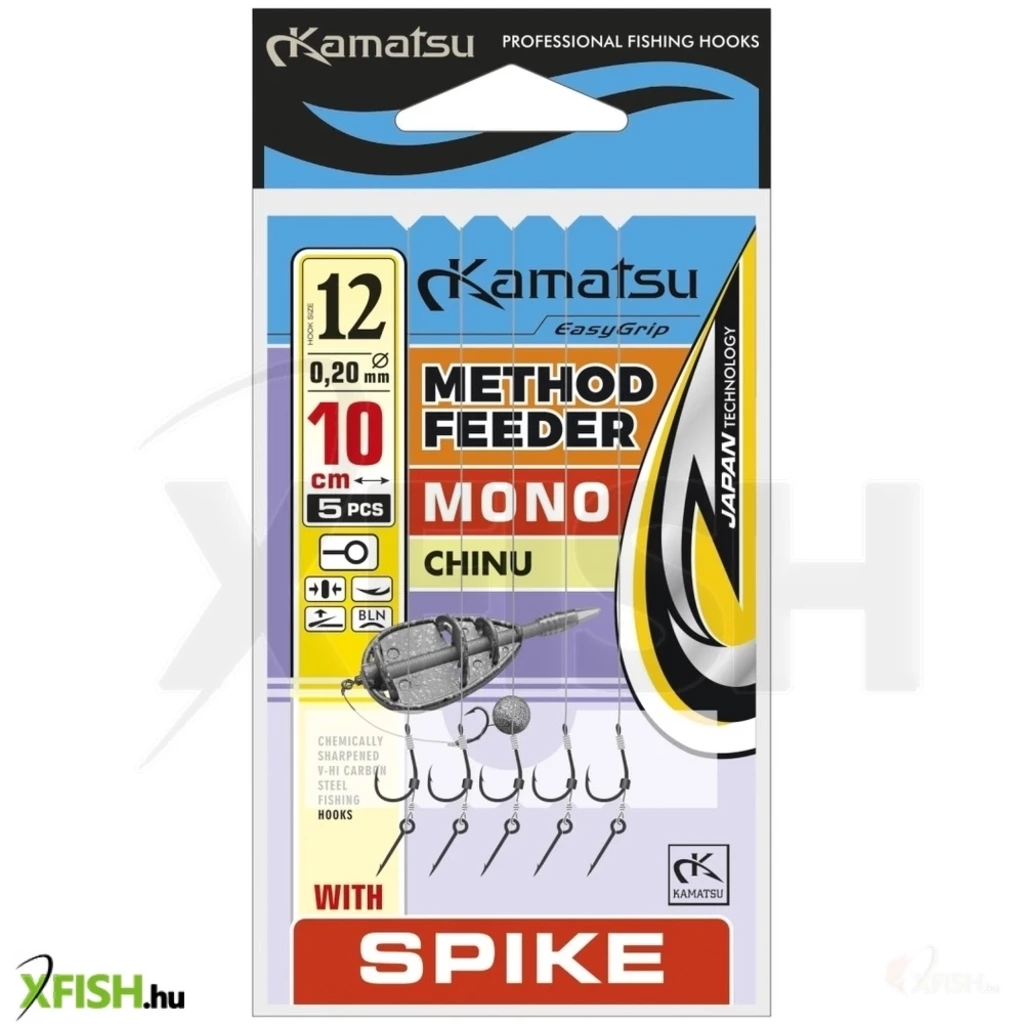 Egy nagyon jó minőségű előkötött horog a nagy Kamatsu márka kínálatában. A terméket kimondottan method és feeder horgászok számára gyártotta le a márka. Prémium minőségű alkotóelemek és minőségi kötések jellemzik a terméket. Az etetőkosár nem tartozéka a szettnek, az ajánlat kizárólag az előkötött horgokat tartalmazza.