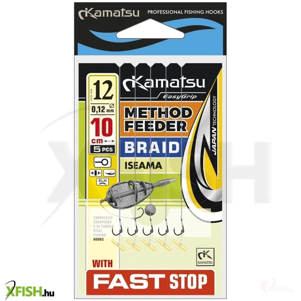 Egy nagyon jó minőségű előkötött horog a nagy Kamatsu márka kínálatában. A terméket kimondottan method és feeder horgászok számára gyártotta le a márka. Prémium minőségű alkotóelem és minőségi kötések jellemzik a terméket. Az etetőkosár nem tartozéka a szettnek, az ajánlat kizárólag az előkötött horgokat tartalmazza.