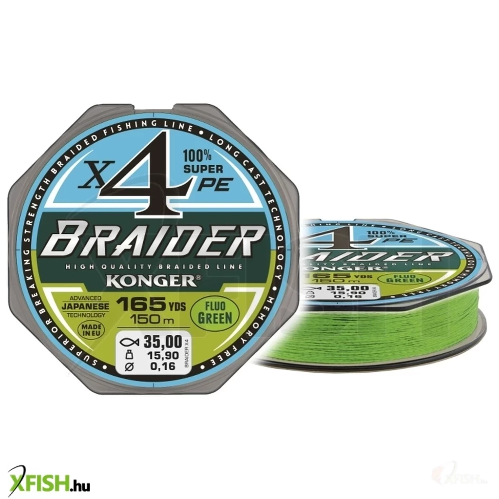 Konger Braider X4 Lime Green Fonott Zsinór 150m 0,12mm 10,1Kg