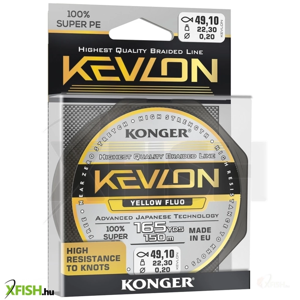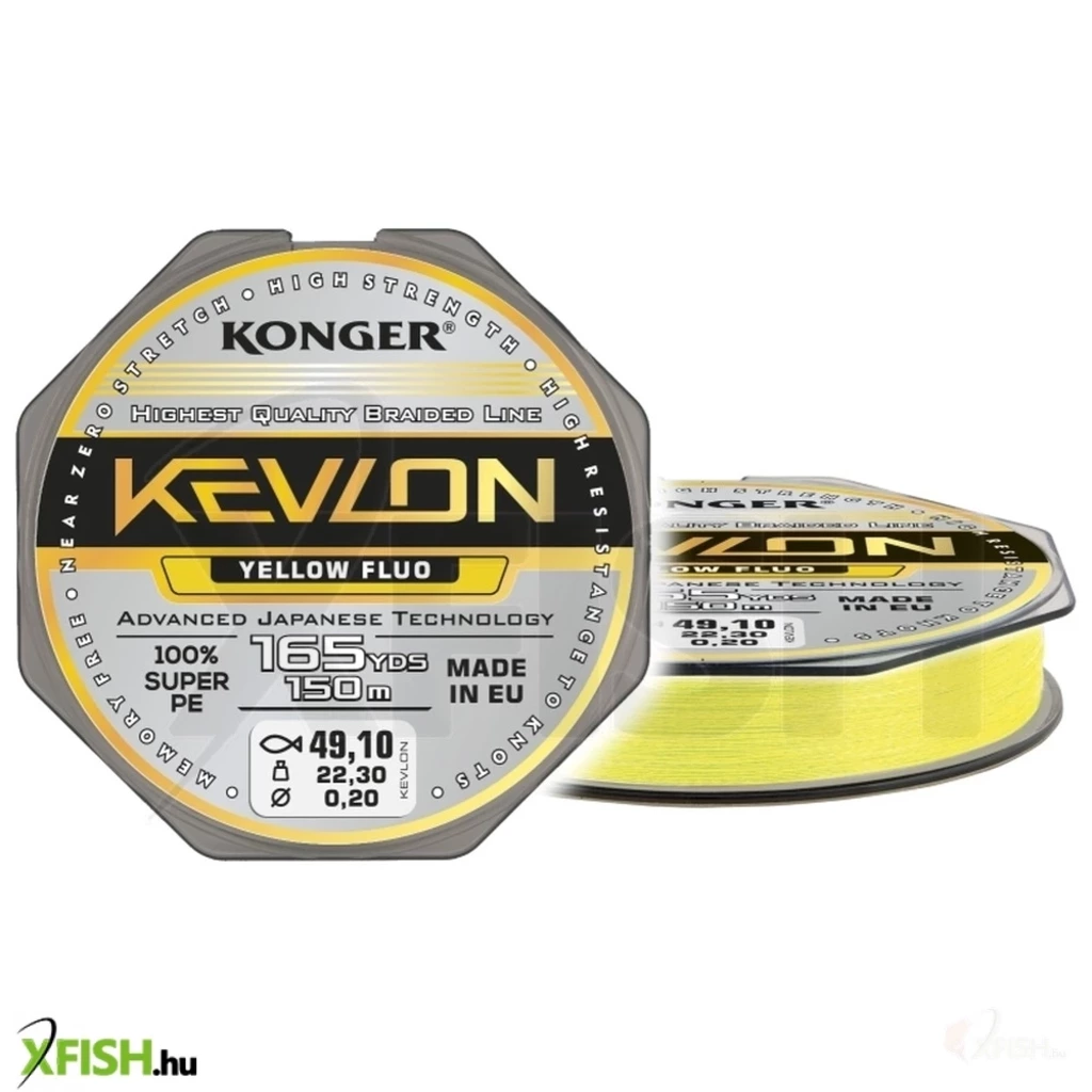Konger Kevlon Yellow Fluo X4 Fonott Pergető Zsinór 150m 0,14mm 14,5Kg