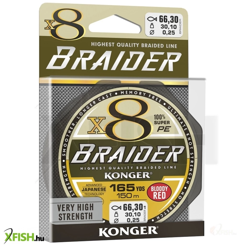 Konger Braider X8 Bloody Red Fonott Zsinór 150m 0,16mm 18,8Kg