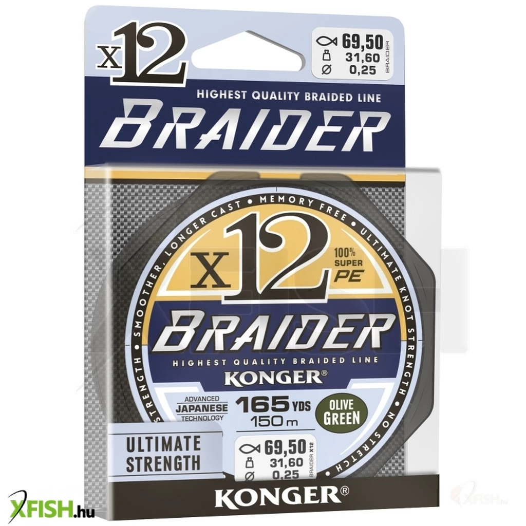 Konger Braider X12 Olive Green Fonott Zsinór 150m 0,20mm 26,6Kg