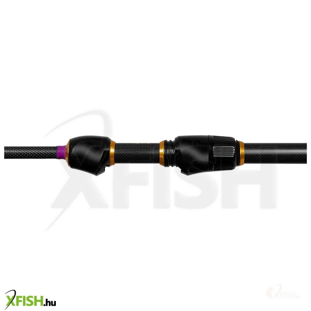 Az esztétikai kidolgozottság további jeleként a bot elegáns megjelenése is lenyűgöző benyomást kelt. A fényes fekete blank arany gyűrűkkel és a lila kötésekkel kellemes vizuális élményt nyújt, miközben az arany elemekkel díszített orsótartó, a fehér háttér előtt hangsúlyosan megjelenő logó és a tartós fém botvég biztosítja a megbízható, kopásmentes használatot, még nehezebb terepen is.