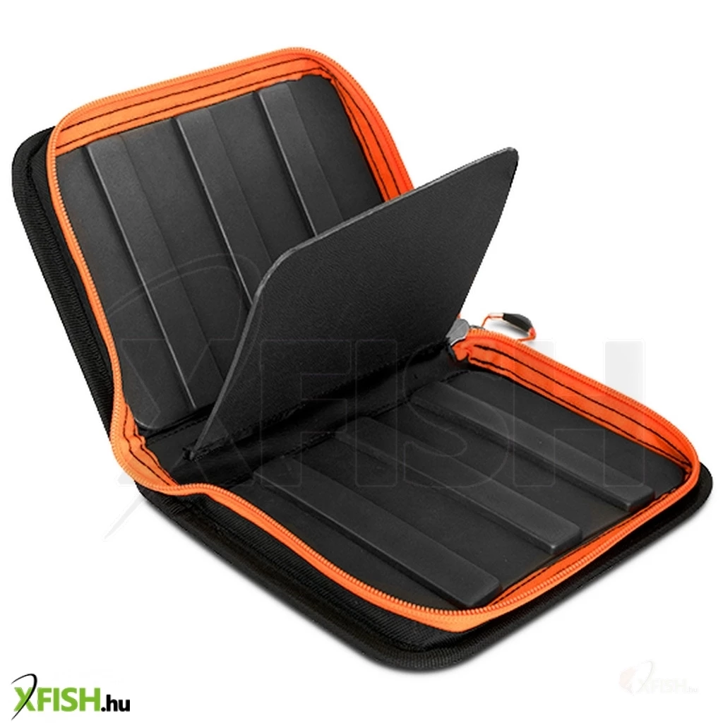 A táska belső részének mindkét oldalát vastag EVA habréteggel vonták be, amely nemcsak a csalik számára nyújt biztonságos tárolóhelyet, de elősegíti a horgok beakadásának megakadályozását is. A tömör műanyag válaszfalak ezen kívül strukturált rendet tartanak, így mindig könnyedén elérhetjük a leggyakrabban használt csalinkat.