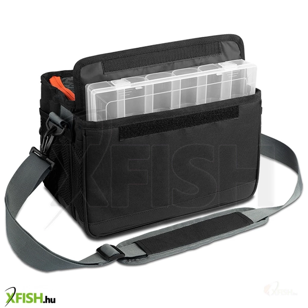 Az átgondolt crossbody kialakítás lehetővé teszi, hogy a táskát a mellkasánál viselje, így anélkül érheti el a csalikhoz és tartozékokhoz, hogy levenné a táskát a válláról. Ez nemcsak időt és energiát takarít meg, hanem maximális hatékonyságot biztosít a vízparton. A táska fő rekesze praktikus tépőzárral nyitható, ahol egy külön rekeszekkel ellátott műanyag tárolódoboz segít rendszerezni a csalik széles választékát.
