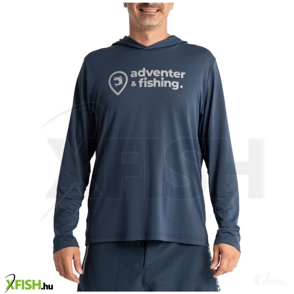 Hosszú ujjú kapucnis UV póló Original Adventer témában, az Adventer & Fishing márka sötétkék színében.