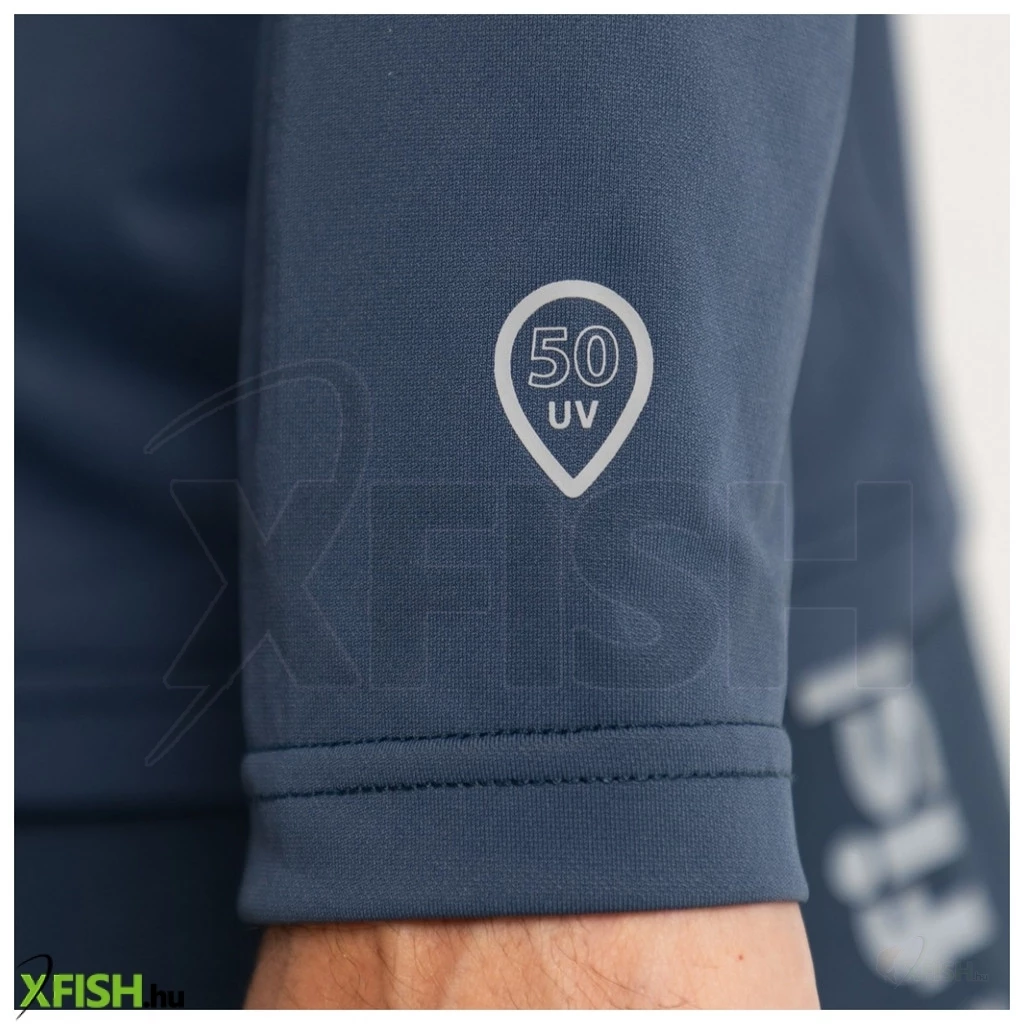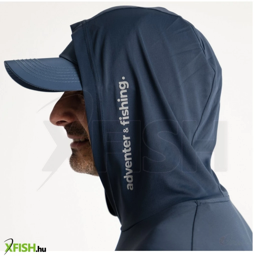 Hosszú ujjú kapucnis UV póló Original Adventer témában, az Adventer & Fishing márka sötétkék színében.