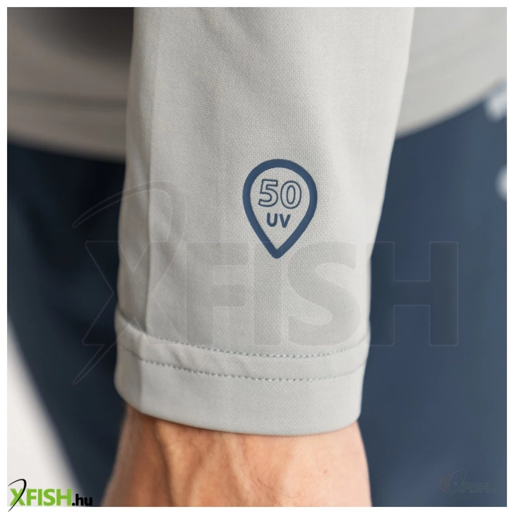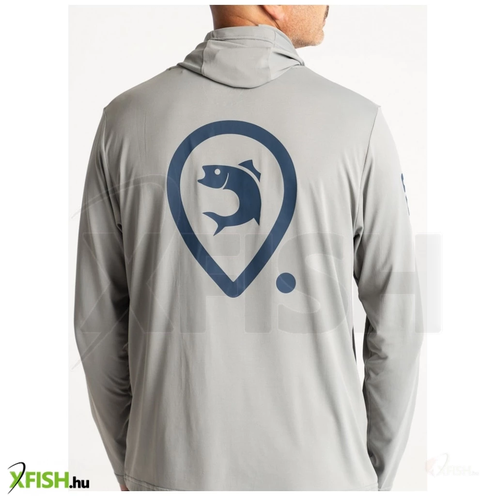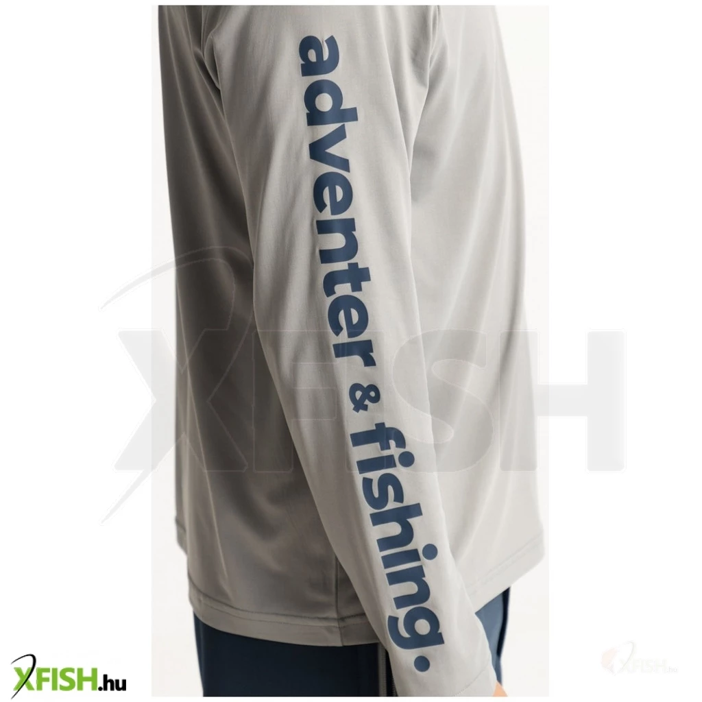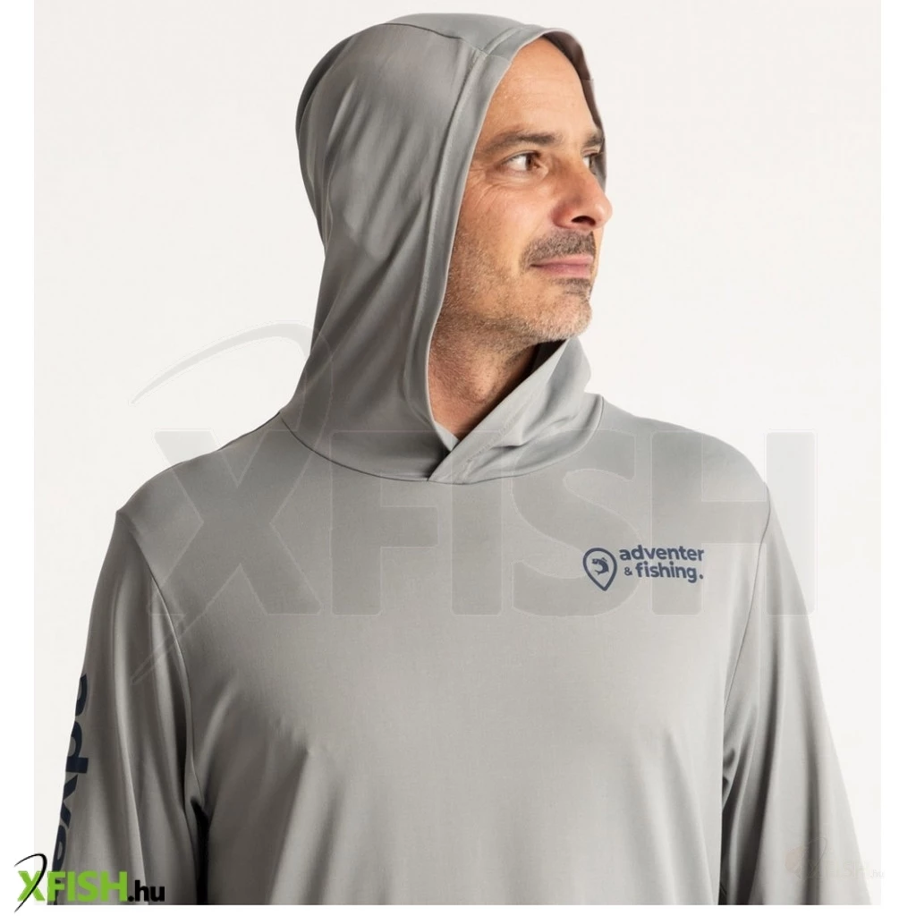 Hosszú ujjú kapucnis UV póló Limestone témában, az Adventer & Fishing márka szürke színében.