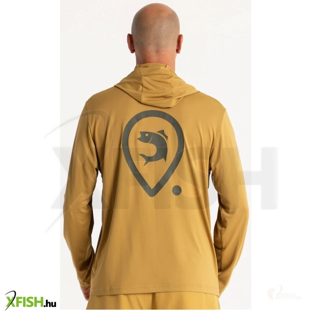 Hosszú ujjú kapucnis UV póló Sand témában, az Adventer & Fishing márka homok színében.