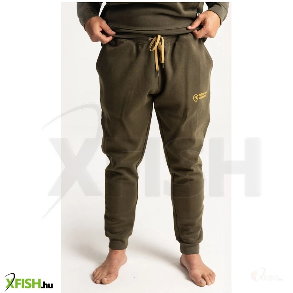Khaki színű férfi melegítő alsó, homokszínű írással. A 85% pamutból készült puha anyag és a kényelmes illeszkedés ideális társsá teszi a horgászathoz, utazáshoz és egyéb szabadidős tevékenységekhez. Könnyű méretállítás stílusos húzózsinórral a derekán. A még nagyobb kényelem érdekében ne felejtse el viselni az azonos dizájnú pamut pulóvert is. US méretezés, az általában használt EU mérettől egyel kisebb méretet érdemes választani a ruházatból!
