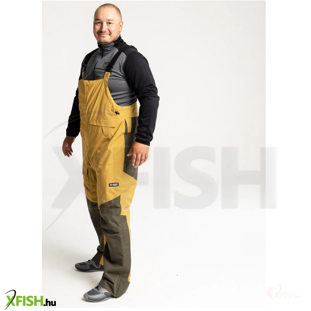 A nadrág mellkasig emelkedik, hogy maximális kényelmet biztosítson horgászat közben.