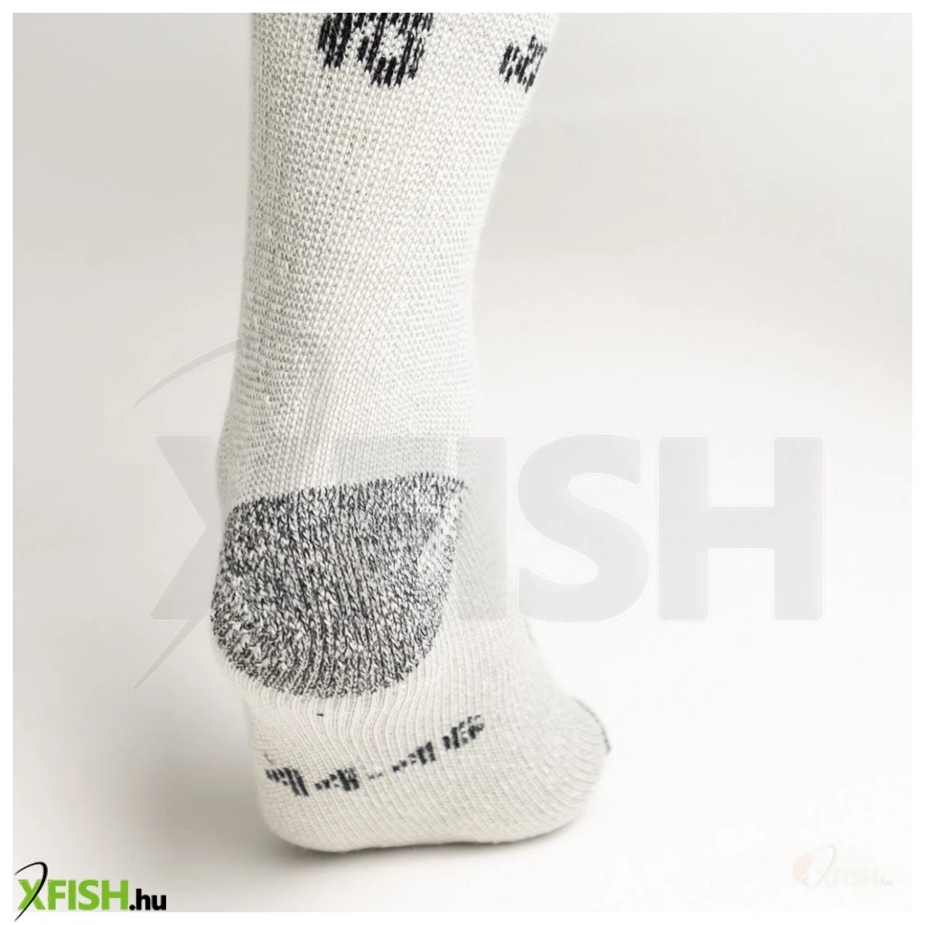 Magas szárú termikus zokni acélszürke színben. A lábszárközépig érő magasságuknak köszönhetően kiváló hőszigetelő tulajdonságokkal rendelkeznek. Légáteresztő antibakteriális anyagból készültek, MERINO WOOL (39%) keverékével, ami nagy áteresztőképességet biztosít.