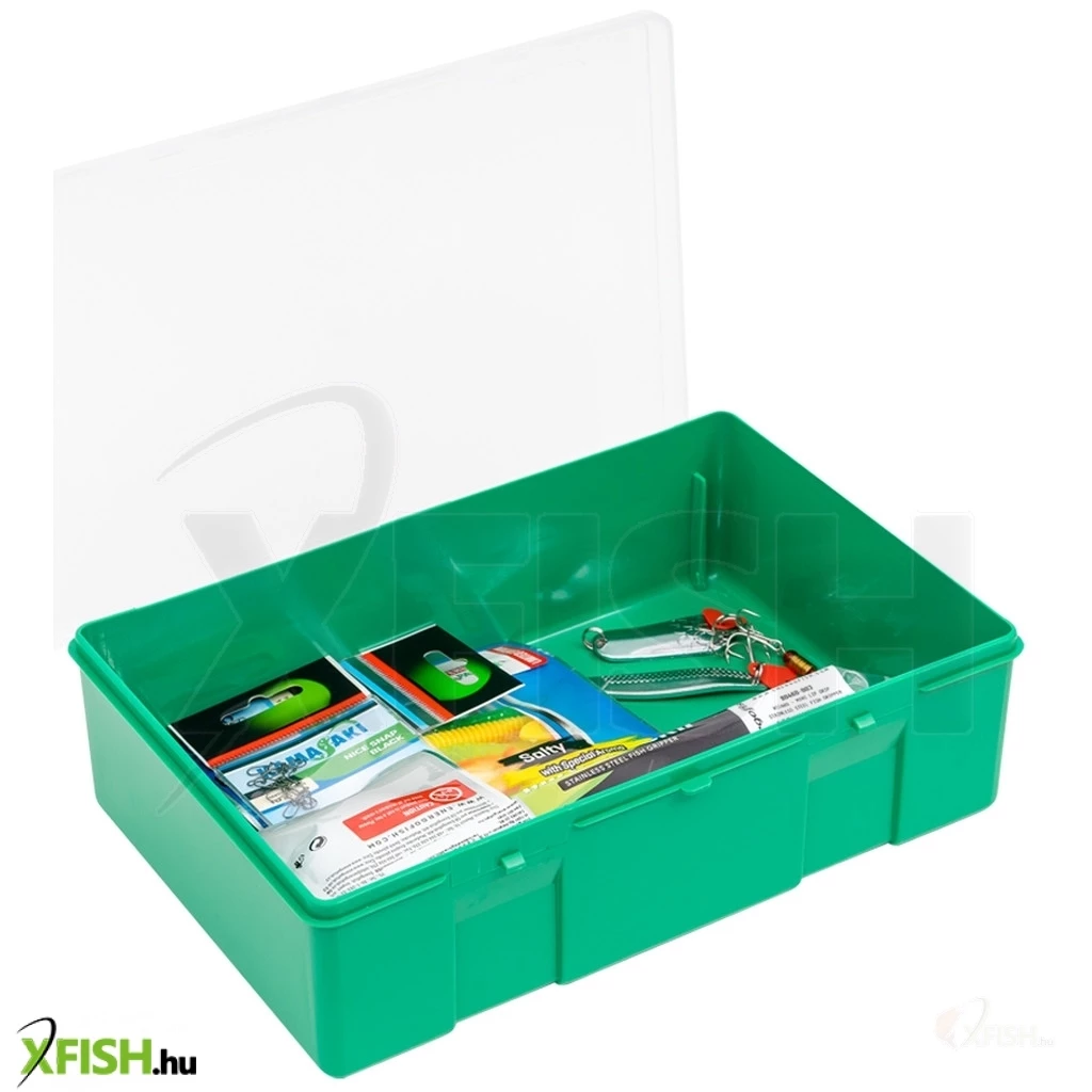 A doboz egy kivehető rekesszel került forgalomba, amiben a kapcsok, forgók, horgok előkék kaphatnak helyet vagy akár kisebb műcsalik is.