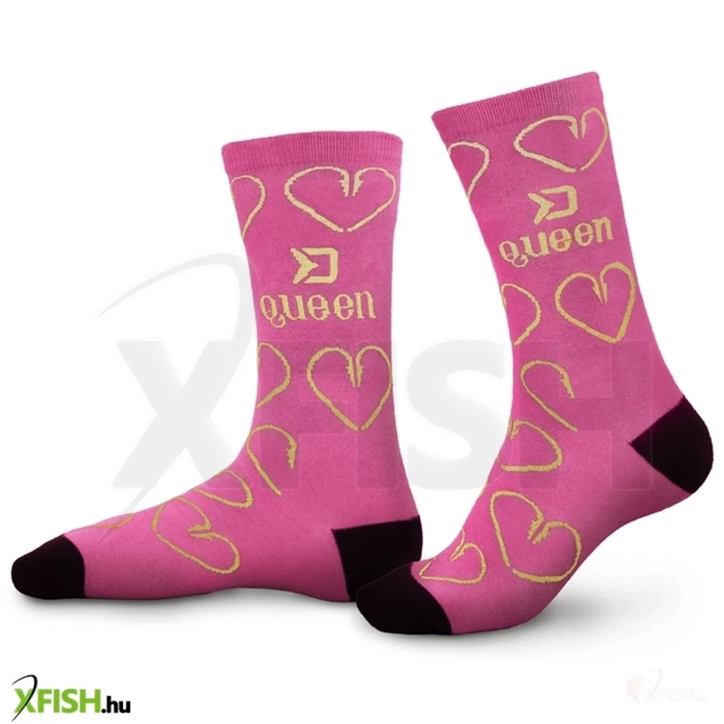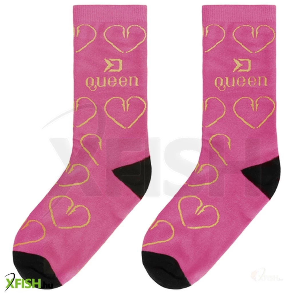 Stílusos, rózsaszín zokni, amelyet kifejezetten a gyengébb nem képviselőinek terveztek. A QUEEN zokni egyaránt tökéletes mindennapi kényelmes viseletnek, valamint vízparti sétákhoz. Kialakításuk tökéletesen illeszkedik a QUEEN sorozat többi eleméhez, és így teljessé teszi minden női horgász öltözékét.