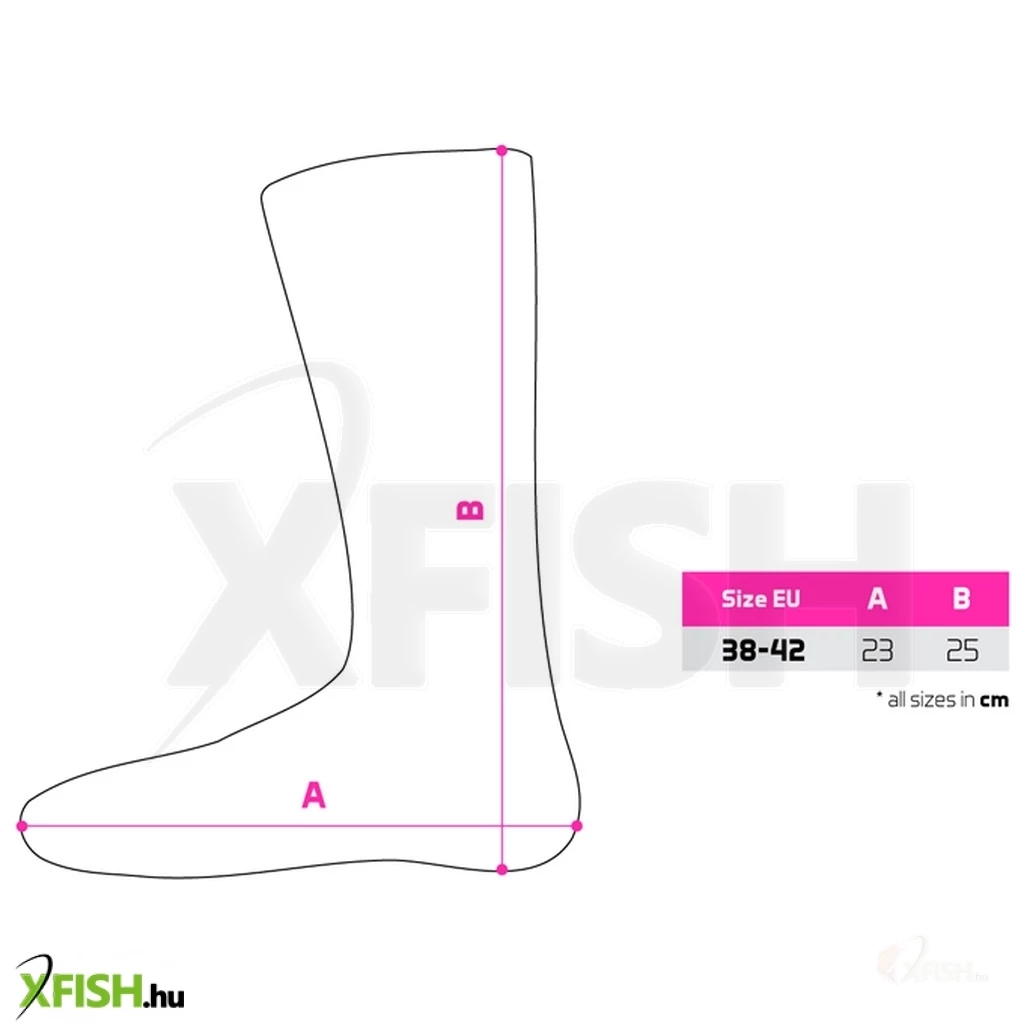 Az univerzális 38-41-es méret minden lábnak tökéletes kényelmet biztosít. A melegen tartó tulajdonságokkal rendelkező kényelmes anyag különösen a tavaszi és őszi horgásztúrák során lesz igazán fontos, de egész évben használható.