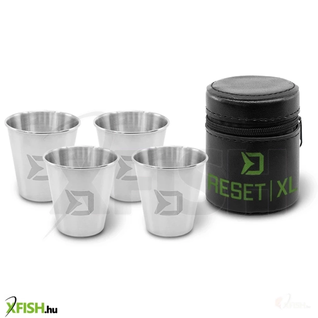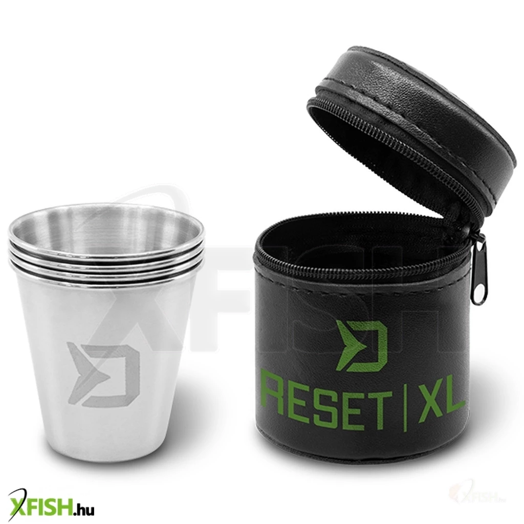 Egy kompakt, törhetetlen, rozsdamentes acélból készült pálinkáspohár szett, most praktikus utazócsomagban nagyobb mennyiségben! A RESET XL utazókészlet egy praktikus műbőr tokot és négy 70 ml-es rozsdamentes acél poharat tartalmaz. Ajánlott mindazok számára, akik szeretik kedvenc italaikat fogyasztani horgászat, túrázás, vadászat vagy pihenés közben a hétvégi házikójukban.