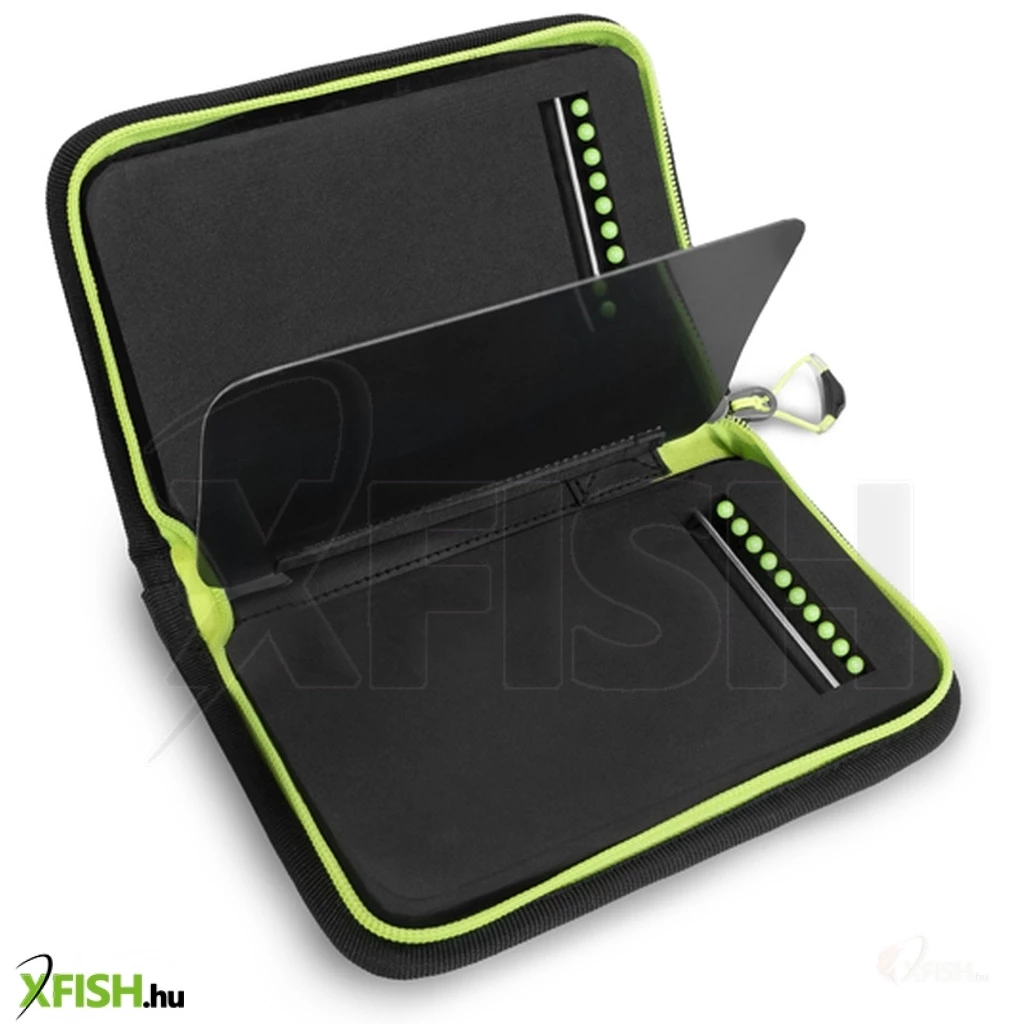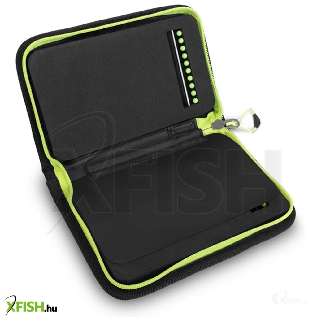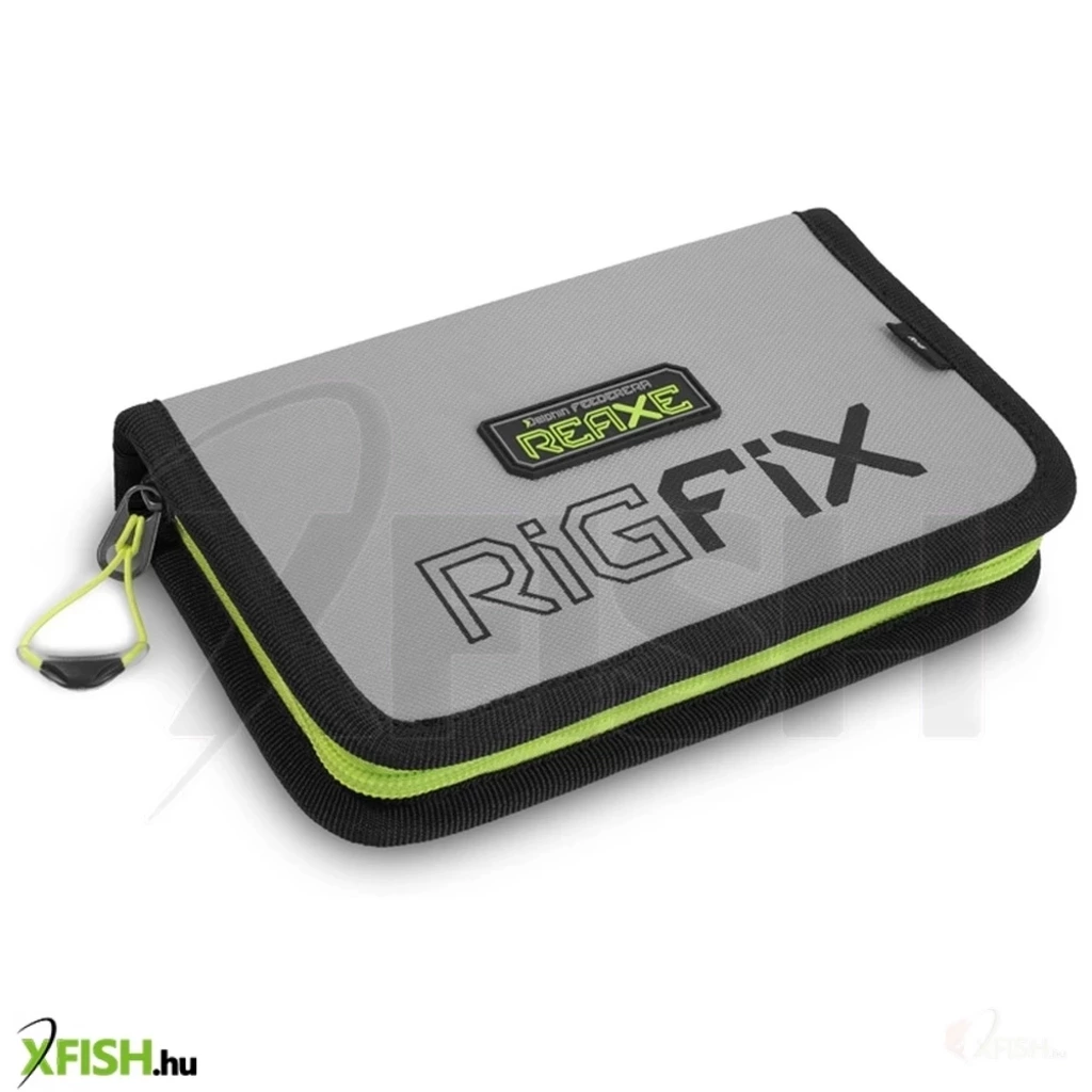 Ezért mutatjuk be a REAXE RigFIX előketartó táskát. Ez a praktikus tok method feeder szerelékek tárolására lett tervezve, segítségével mindig egyenesen és könnyen elérhető helyen tarthatja előkéit. Szerkezete rendkívül egyszerű, belül kemény habszivacs található, két bevágással. Két acélrúddal rendelkezik, amik az előkék rögzítésére szolgálnak. Ráadásul 30 tű is található benne a szerelékek kifeszítéséhez és rögzítéséhez, ami elegendő mind az alkalmi- mind a profi versenyhorgászok számára. A külső része nagyteherbírású anyaggal borított. A tok Delphin logóval ellátott fém cipzárral rendelkezik, és REAXE verseny kialakításban kapható.