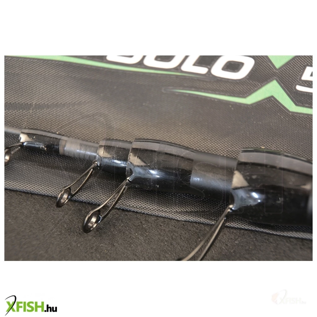 A bot megjelenése is vonzó, hiszen matt sötétzöld alapszíne fehér feliratokkal, ezüst és fekete mintákkal van díszítve. A békazáras orsótartó fekete cérnával lett rögzítve, és annak aljának bot végétől mért távolsága 41 cm, ami biztosítja, hogy a bot kényelmesen illeszkedik egy átlagos magasságú horgász alkarjához. Ez a kialakítás megakadályozza a túlzott kilógást, miközben kényelmes és ergonomikus marad a használat során. A bot felső részén található strapabíró gyűrűsor speciális kialakítása megakadályozza, hogy a zsinór rácsavarodjon, ami különösen hasznos horgászat közben. A SIC betétek garantálják, hogy a gyűrűk ne sértsék fel még a legvékonyabb monofil zsinórokat sem.