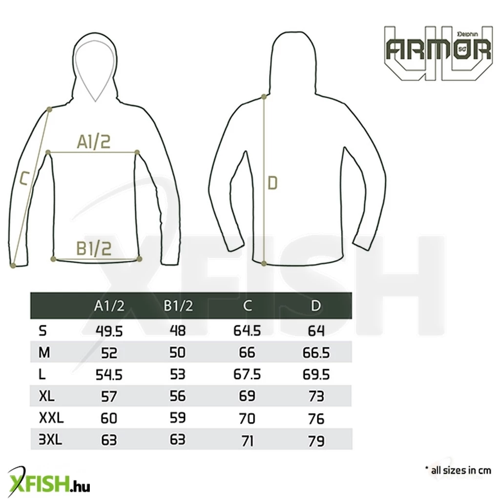 Tekintettel arra, hogy a fejünk nagyon gyorsan túlmelegedhet, a pulóver magas gallérral és kapucnival rendelkezik. Ráadásul az ujjai extra hosszúak, és hüvelykujj bujttatóval rendelkeznek, hogy a kezét is megvédje. Puha elasztikus anyagból készül, amely gyorsan szárad, ha horgászat közben elázna.