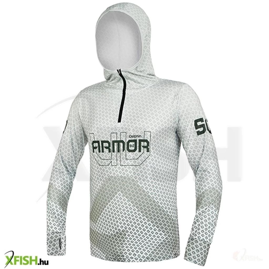 KategóriákKategóriákHorgász Ruházat Póló Delphin Uv Armor 50+ Kapucnis Hosszúujjú Póló Fehér-Olívazöld Xxxl