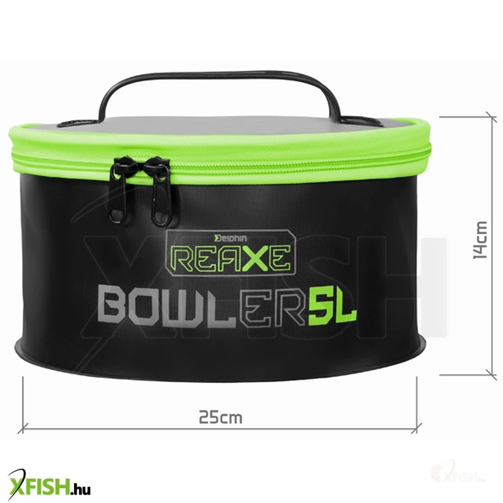 Praktikus táska feeder- és method feeder horgászok számára. Azonban a pontyhorgászok vagy az úszós horgászatot kedvelők is értékelni fogják. A táskát használhatja csalikeverékek szállítására, de különféle horgászfelszerelések és kiegészítők tárolására is. A táska kerek formájának köszönhetően könnyű elkészíteni és kikanalazni belőle a különböző etetőanyagkeverékeket, magokat vagy pelleteket. Mivel nincsenek sarkai, az etetőanyag egyenletesen nedves lesz a tökéletes állag és a lehető legjobb csalogatóhatás elérése érdekében. A táska strapabíró EVA anyagból készült, amely vízálló és könnyen tisztítható. Minőségi cipzárral ellátott tetővel és két lehúzóval is rendelkezik, hogy a keverék hosszabb horgászatok során is megőrizze optimális nedvességtartalmát. Ráadásul praktikus szállítópánttal is rendelkezik. A Delphin REAXE feeder versenysorozat színeiben tervezték.