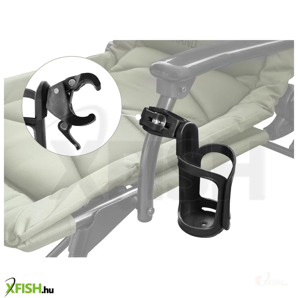 Élvezze italát horgászszéke kényelméből a sokoldalú Delphin DrinxHOLD pohártartóval. Az állítható rögzítés lehetővé teszi használatát a legtöbb szabvány kemping- és horgászszékhez, kerékpárhoz vagy babakocsihoz. Karos szerkezete garantálja a szilárd fogást és megakadályozza a tartó elcsúszását. Ezenkívül a csésze és annak tartalma akkor is függőleges helyzetben marad, ha ferde szerkezetre rögzíti. Anyaga rugalmas, és 8 cm-es átmérőig alkalmazkodik a különböző méretű poharakhoz.