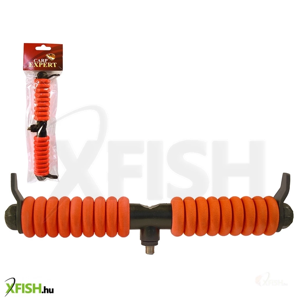 A narancssárga-fekete színű, műanyag, EVA bevonatos bottartó villa fej a Carp Expert márkát viseli.