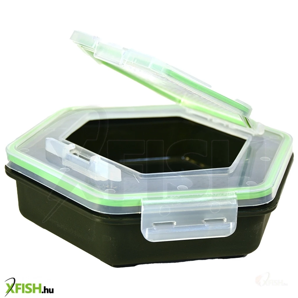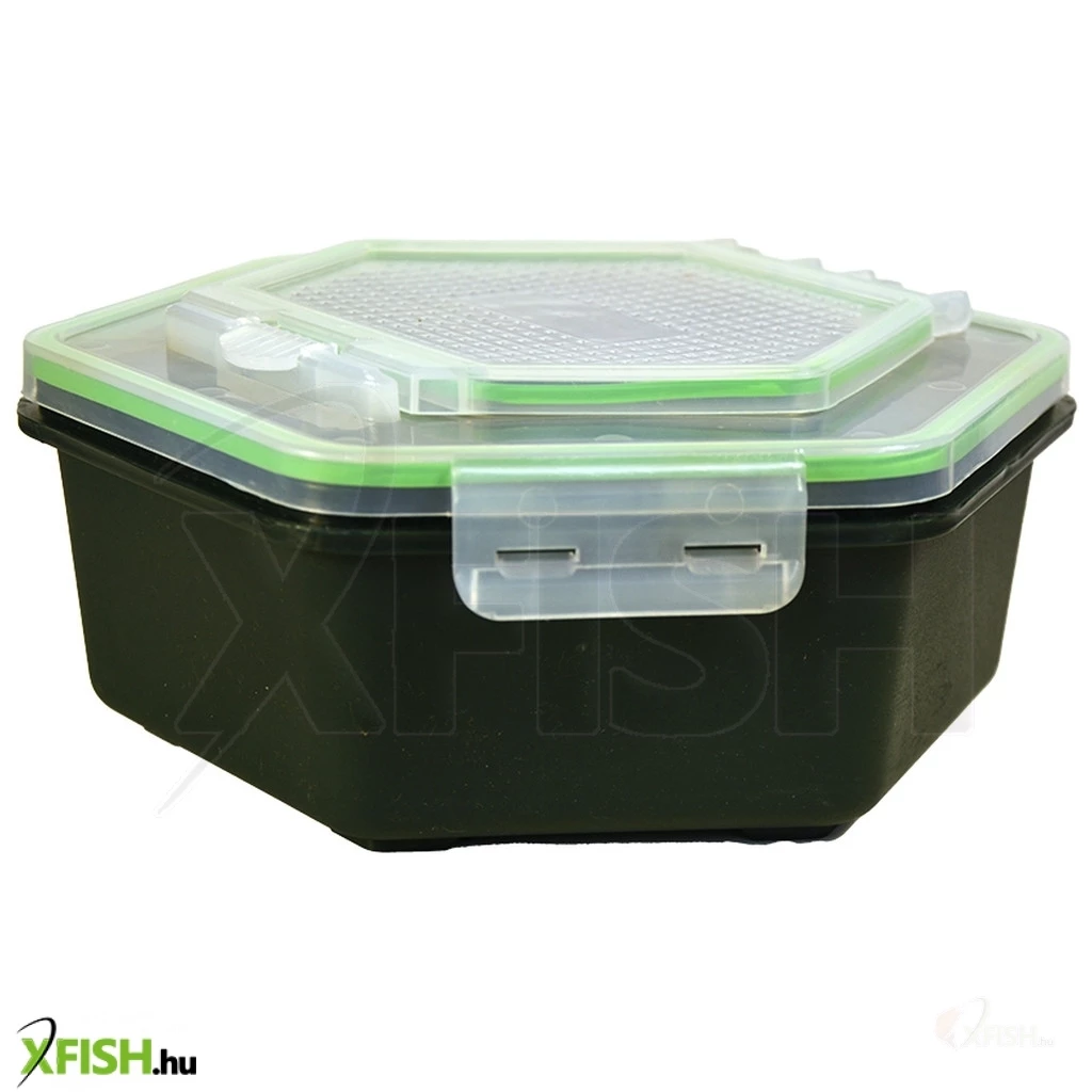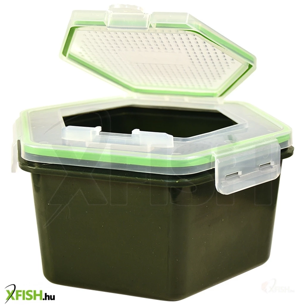 Masszív műanyag csalitároló doboz precízen záródó műanyag fedővel. Apró furatokkal ellátott fedele engedi levegőzni a csalinkat. Kis méretű furatain még a legkisebb pinkik sem tudnak megszökni. A dobozok fedele praktikus felső és oldalsó patentzárakkal van ellátva, mely miatt a praktikussága, akár csalizás során is kiemelkedő.