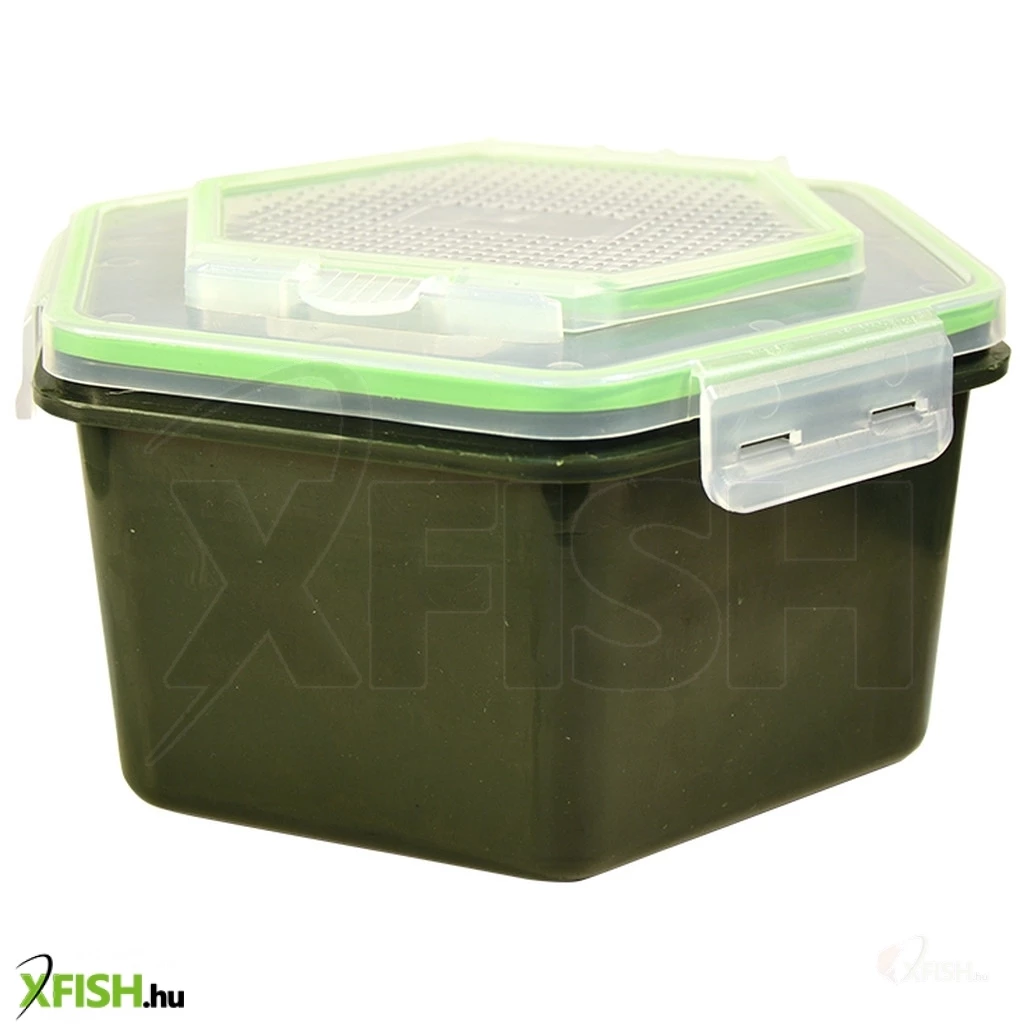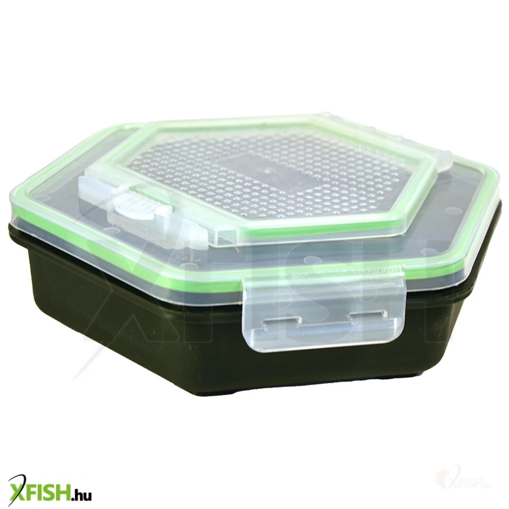 Masszív műanyag csalitároló doboz precízen záródó műanyag fedővel. Apró furatokkal ellátott fedele engedi levegőzni a csalinkat. Kis méretű furatain még a legkisebb pinkik sem tudnak megszökni. A dobozok fedele praktikus felső és oldalsó patentzárakkal van ellátva, mely miatt a praktikussága, akár csalizás során is kiemelkedő.