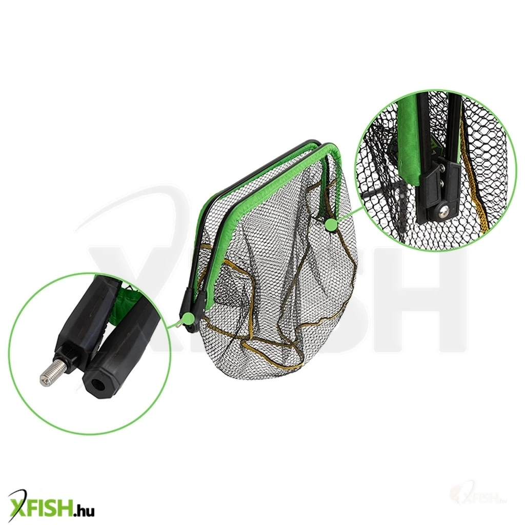 Mivel a fej a lebeg a vízfelszínen, nyugodtan ott lehet hagyni, amíg a halat fárasztja, és a merítőháló felé tereli. Kialakítása illeszkedik a REAXE feeder sorozatunk zöld és fekete színéhez. A keret félbehajtható, így nem foglal annyi helyet, mint a hagyományos merítőhálófejek.