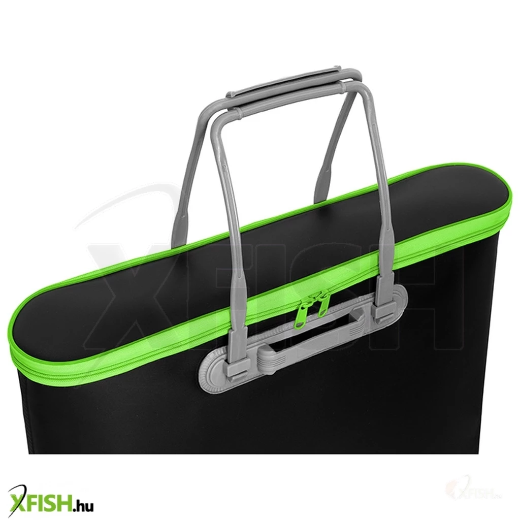 A táska két műanyag fogantyúval rendelkezik, amelyek a táska falai mentén csúsztathatóak a könnyebb kezelés érdekében. Minőségi cipzárral teljesen zárható, amely bent tartja a vizet és a szagokat.