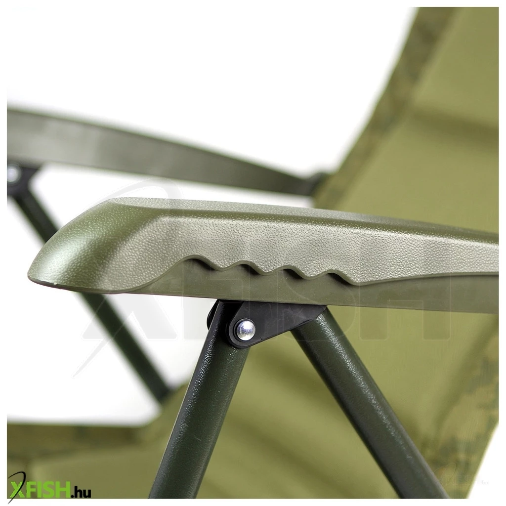 A háttámla innovatív, karfába épített gyorszárja lehetővé teszi, hogy a háttámla dőlésszögét könnyedén és gyorsan állítsuk be anélkül, hogy fel kellene állnunk a székből. Csupán emelni kell a karfákat, majd a fogazást lenyomva rögzítheti a kívánt szögben. Ez az egyszerű, mégis praktikus megoldás maximális kényelmet biztosít a horgászok számára, amikor a háttámla állításáról van szó.