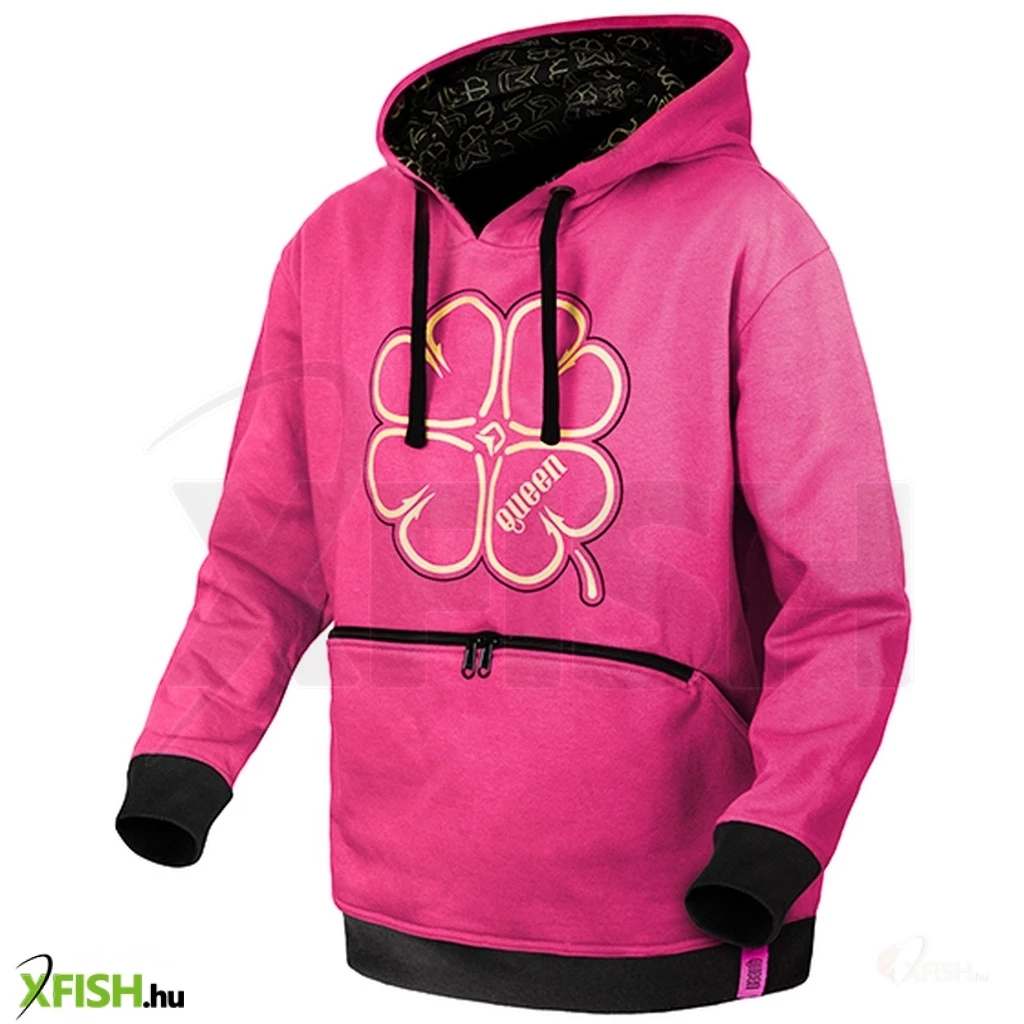 Egy stílusos, eredeti dizájnnal rendelkező kapucnis pulóver; a QUEEN 4Love pulcsiban minden női horgász kényelmesen érezheti magát. Merész rózsaszín színű, fekete elemekkel és sárga nyomattal, hogy mindenhol megforduljanak Ön után.