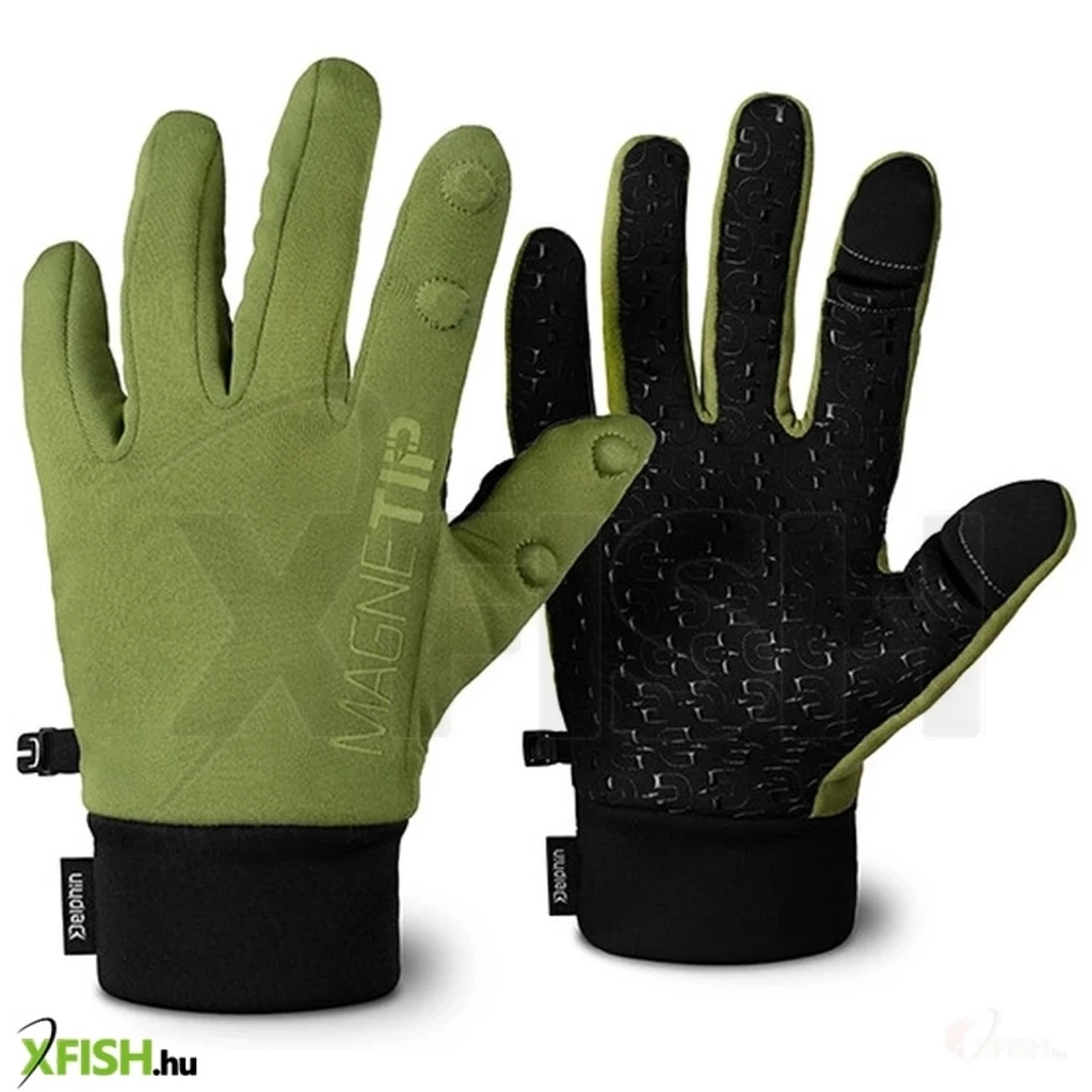 A MagneTIP kesztyű dupla szövetréteggel rendelkezik a csuklón a jobb hőszigetelés és a tökéletes illeszkedés érdekében. Zöld színben készül, fekete elemekkel. Mindkét kesztyű oldalán műanyag kapocs található, amellyel a kesztyűk egymáshoz rögzíthetők, és így táskában tarthatók, ha újra szüksége lenne rájuk.