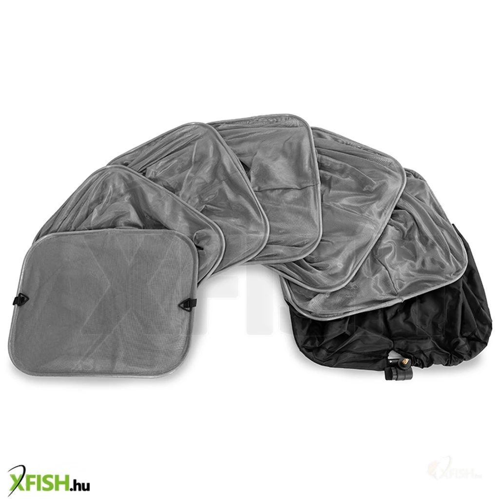 A felső rész fekete, strapabíró szövetből készült, így a kifogott halak könnyedén csúsztathatók a vízbe. A többi része nagyon puha szürke hálóból készült. Kíméletes a halakhoz, így azok teste sértetlen marad. A négyzet alakú forma garantálja, hogy a háló nem borul fel a vízben, és az egyes részek nem záródnak be. A masszív fémgyűrűk (50x40 cm) és a háló hossza elegendő helyet biztosít a fogások számára.
