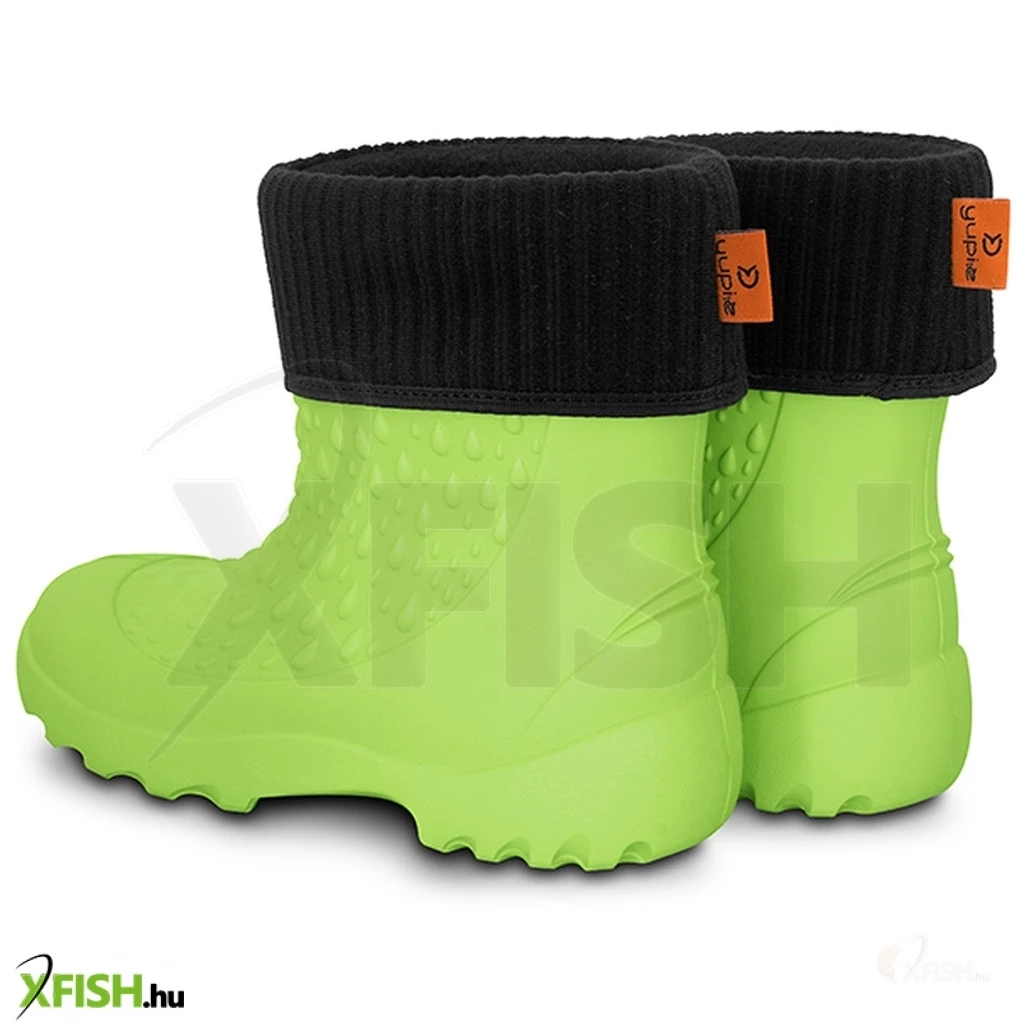 Meleg bélése eltávolítható, így a csizma minden évszakban használható. EVA habból készül a puhaság és rugalmasság érdekében. A felső részen bevágások találhatók, hogy kényelmesebben felvehető legyen. A talp kiváló tapadású, amely csökkenti a nedves vagy egyenetlen terepen való elesés esélyét. Ezek a csizmák semleges zöld színben és sok méretben kaphatók, így fiúknak és lányoknak egyaránt ajánljuk.