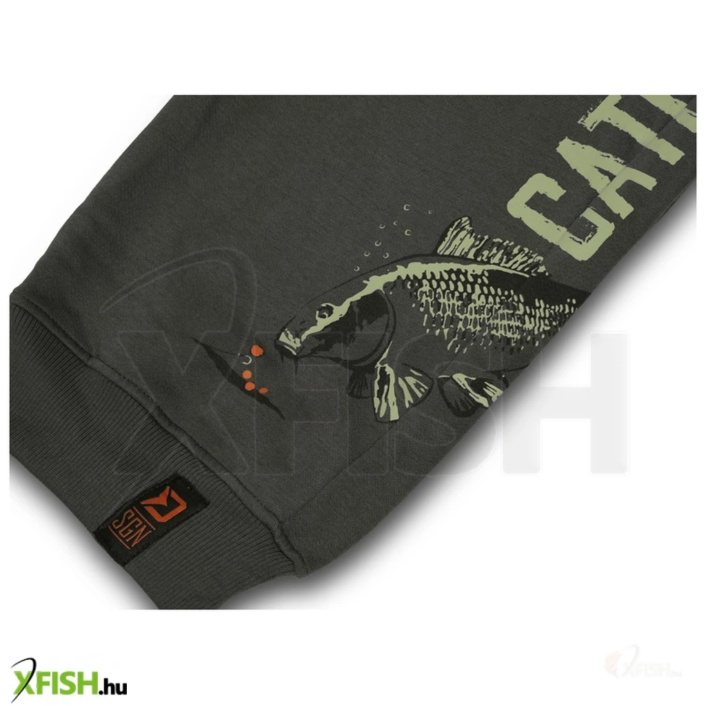 A Catch me CARP NX melegítőnadrágot bal oldalon egy szemet gyönyörködtető grafika díszíti, amelyen a "CATCH ME IF YOU CAN" szöveg olvasható, alul pedig egy táplálkozó ponty látható. A hozzáillő kapucnis pulcsival és pólóval párosítva stílusos öltözéket alkot, amelyben kivételesen jól fogja érezni magát a víz mellett.