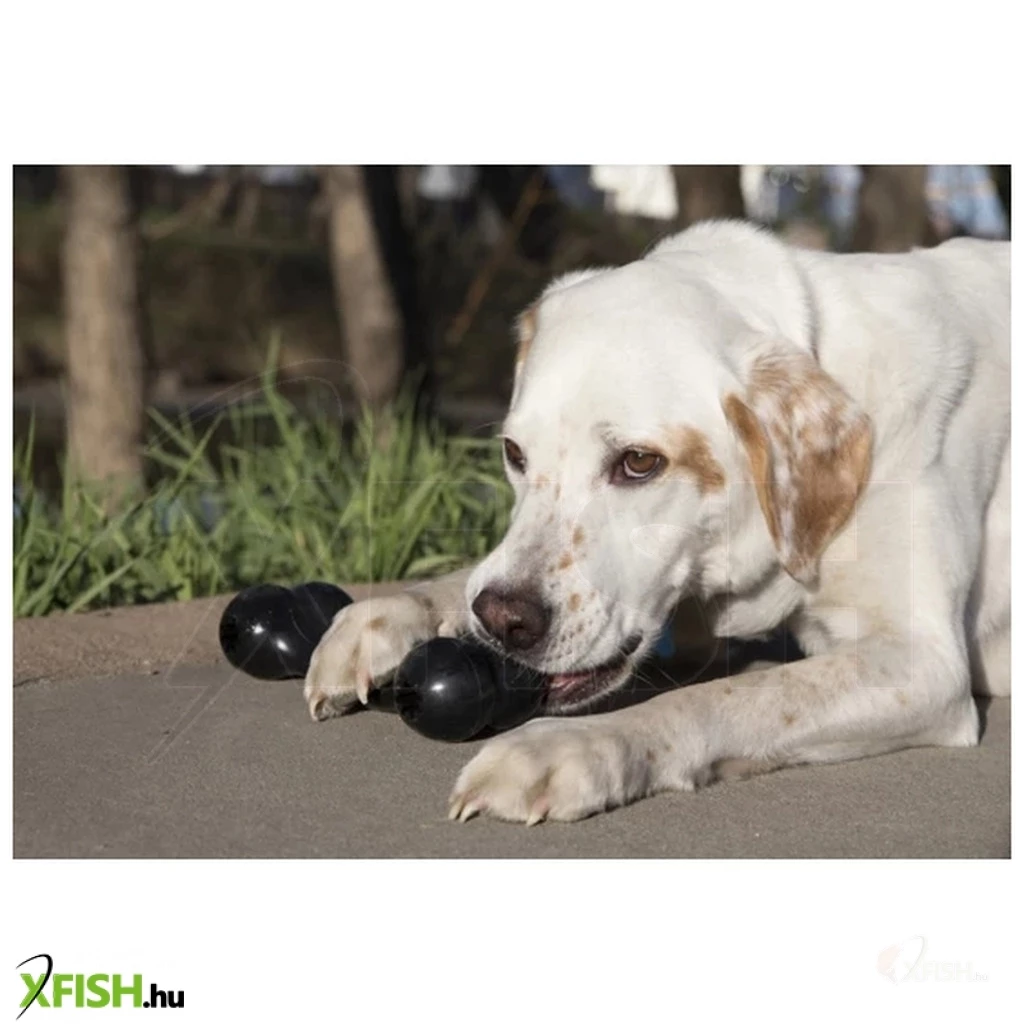 A legtartósabb Kong Extreme csont egyedi, teljesen természetes fekete gumi formulából készült az elszánt rágók számára.